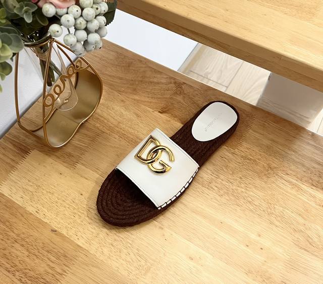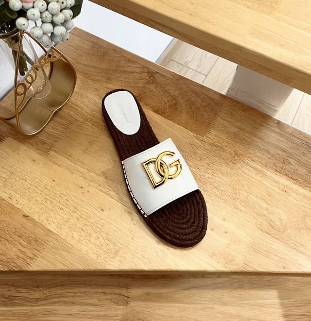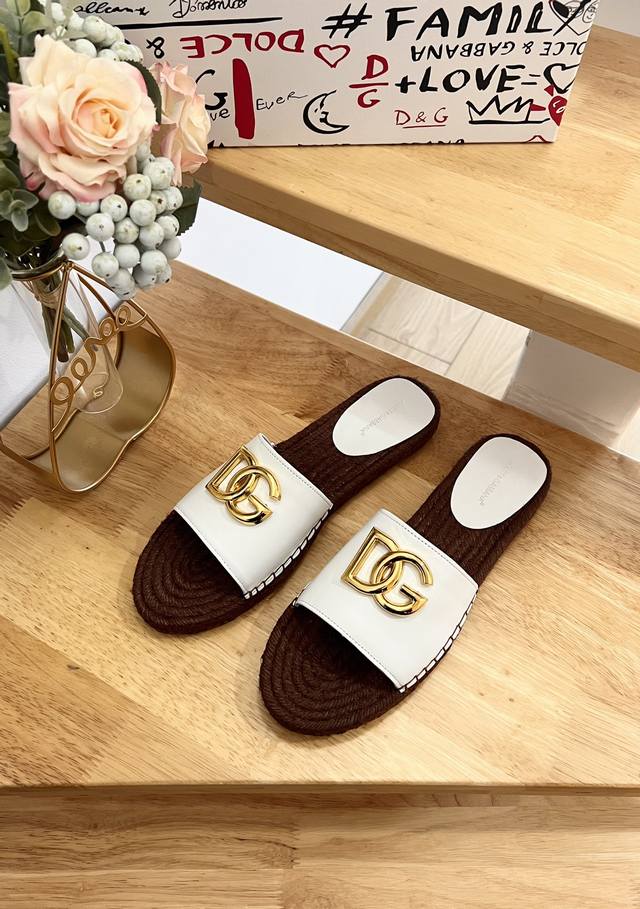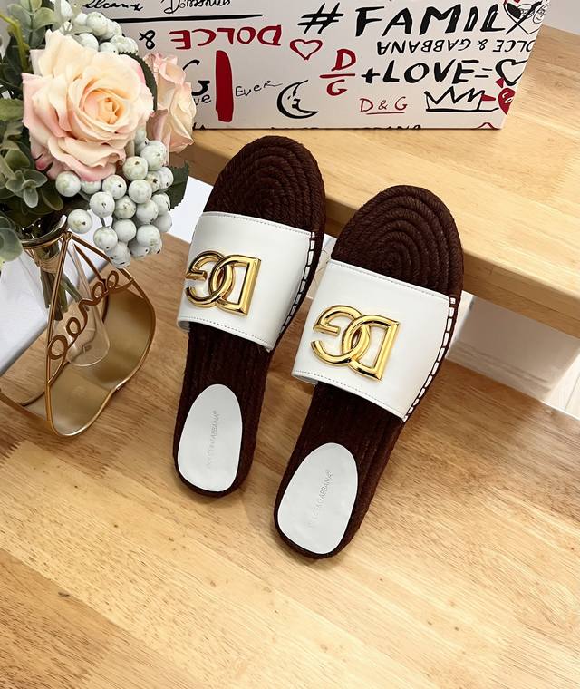 Dolce&Gabbnna杜嘉.班纳D&G麻底拖鞋渔夫鞋DG的风格真是越来越时尚了,超美的色彩搭配,让人一眼就爱上它清凉一夏感觉鞋面是羊皮、DG大金扣,非常精美内里绵羊皮,上脚舒适。原版进口生胶大底,防滑耐磨。