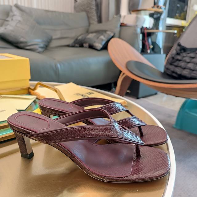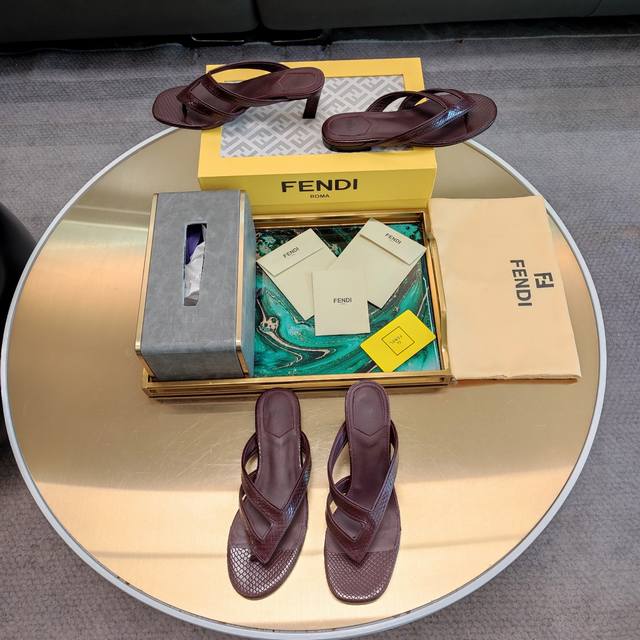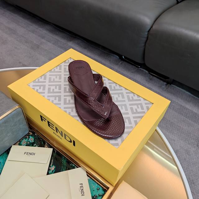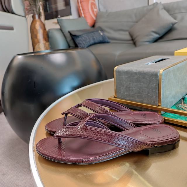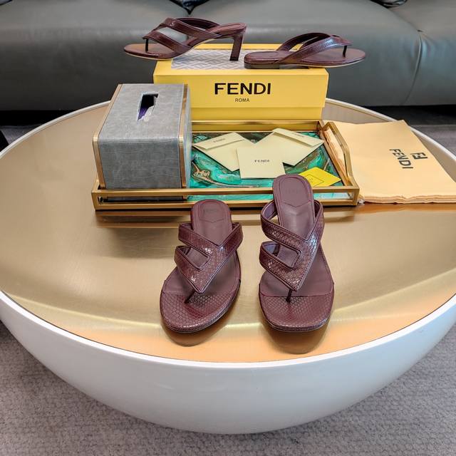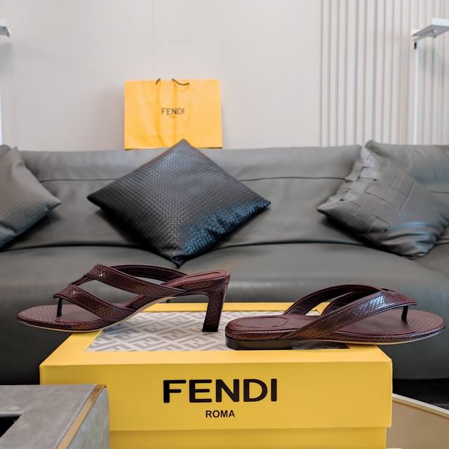 芬迪.25春夏季走秀主推系列,新品上线,芬迪小弯跟夹脚凉鞋,25年夏季新品代表作之一,完美的蜥蜴纹牛皮_材质打造新一代芬迪两款 双高度时尚鞋履。