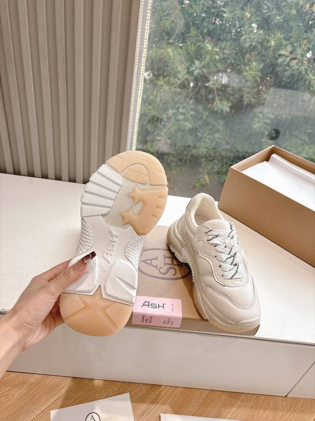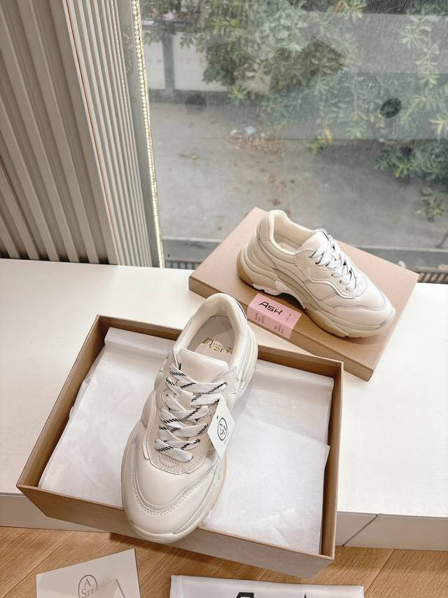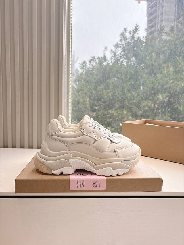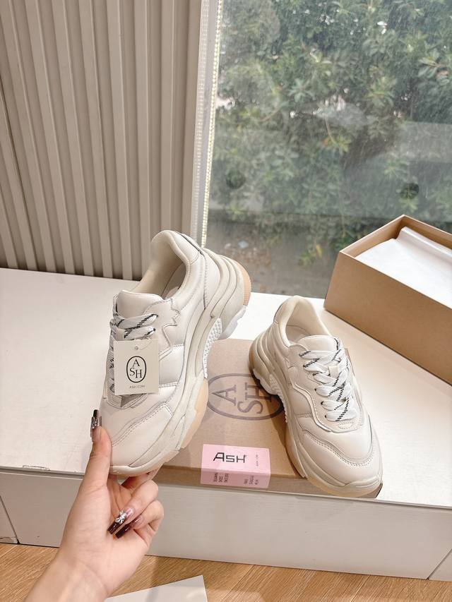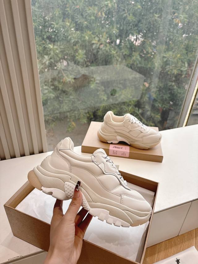 G095所见即所得代购级别ASH女鞋2025春夏新款休闲鞋厚底单鞋小个子增高熊猫小白鞋