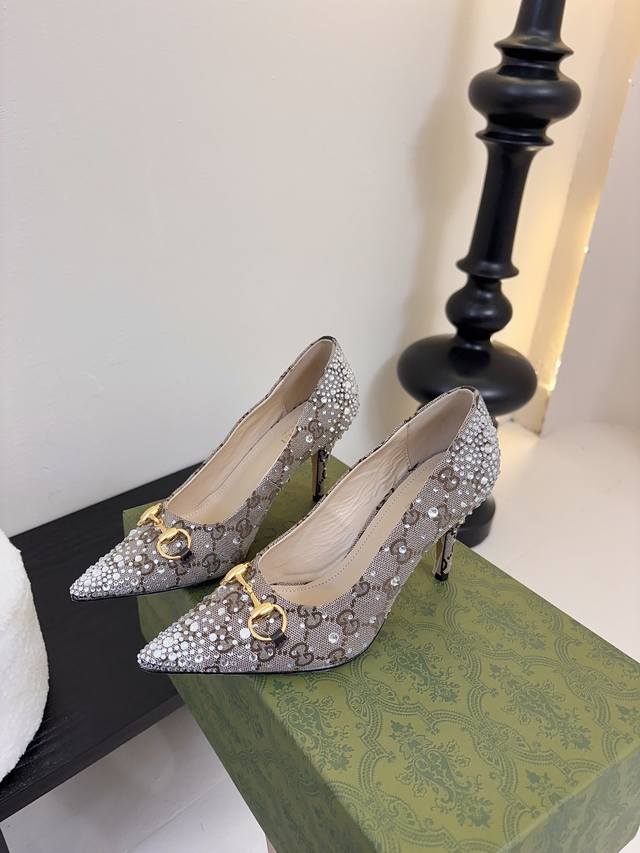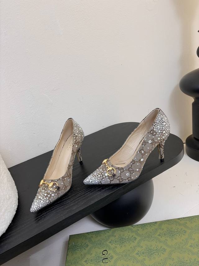 / Gucci 古驰系列高跟女鞋原版1:1开发,精心调制的鞋楦,皮料 特殊材料按原版开发.扣件细腻到无可挑剔! 鞋面:品牌字母布料 烫钻内里:羊皮 大底:真皮大底跟