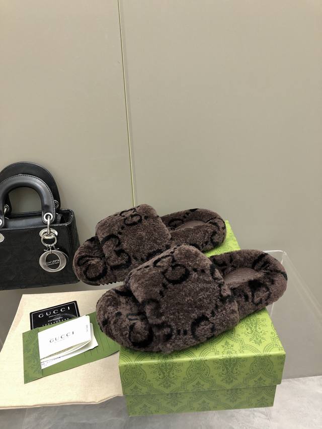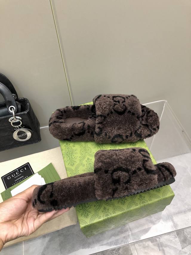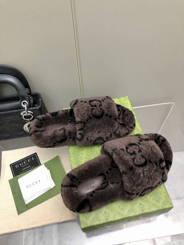 Gucci 新款印花羊毛拖鞋欧洲进口A级羊毛 与原版一致满鞋全部采用纯羊毛鞋面和垫脚logo采用混种羊皮,大底与原版一样的TPU材质底片耐磨防滑!!码数35-4