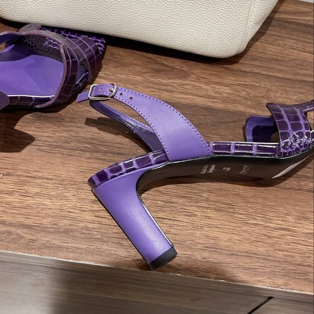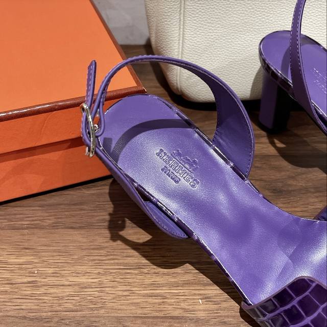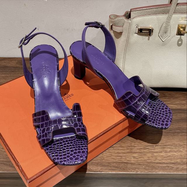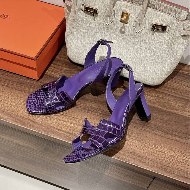 / Herme*爱马仕 早春专柜新款高跟凉鞋系列鞋面:大小纹鳄鱼纹牛皮 每对鞋都是配对纹路的 内里:进口混种羊皮跟高: 粗跟7.5cm 大底:原版意大利真皮大底鞋码