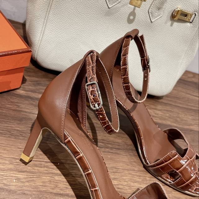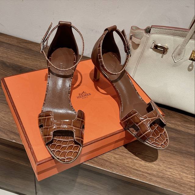 Herme*爱马仕 早春专柜新款高跟凉鞋系列鞋面:大小纹鳄鱼纹牛皮 每对鞋都是配对纹路的 内里:进口混种羊皮跟高: 细跟7cm、10.5cm 、11.5cm大底