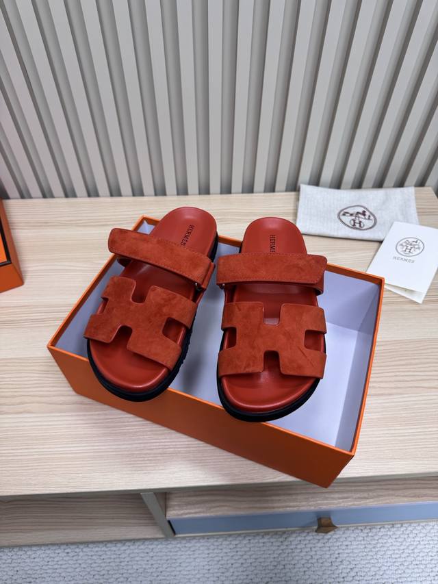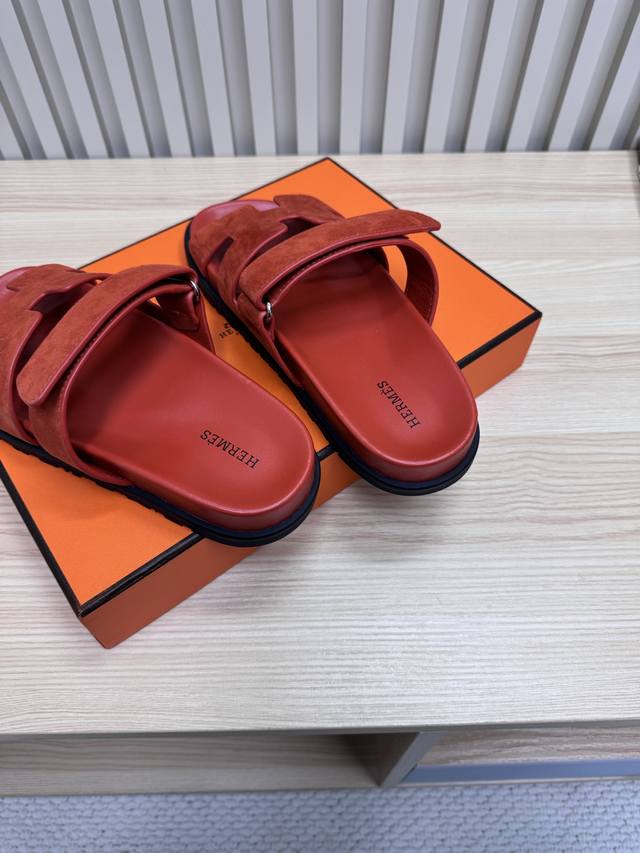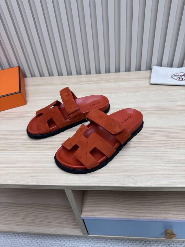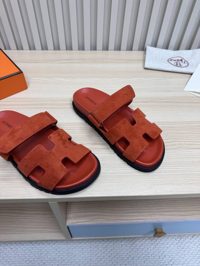 / Hermes 爱马仕火到不行的情侣款二舅拖 凉鞋拖鞋,搭配各种彩色袜子,潮爆了! 鞋面:进口牛皮 羊京皮 布面 掌纹皮内里:进口牛皮 羊皮大底:Tpu防滑耐磨大