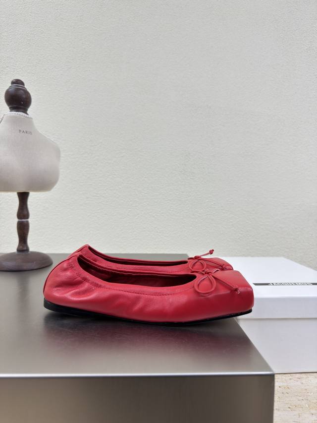 Jacquemus25ss方头蝴蝶结单鞋个性突出 鲜明格调 面料 小牛皮内里 小羊皮大底 意大利真皮大底码数 35 36 37 38 39 40 41