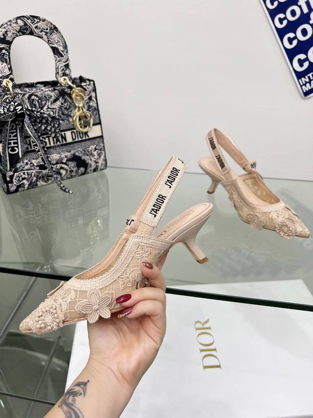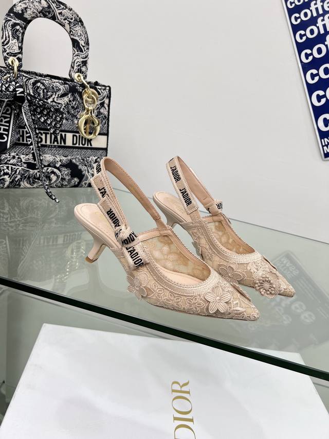 J'ADIOR织带后空凉拖 迪奥 Dior 2024春夏最新色 Jardin d’Hiver 提花刺绣字母logo高跟蝴蝶结拼色女鞋 市场顶级高端版本