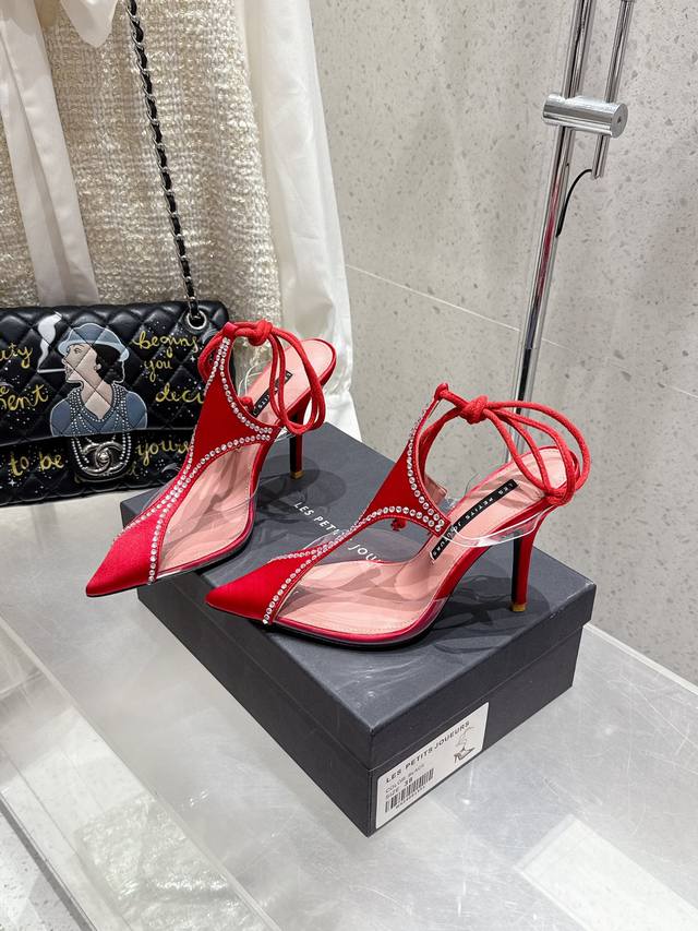 / les petits joueurs 2025年春夏系列新品~性感靓丽首选单品鞋面选用优质缎面烫钻+,进口水染羊皮垫脚,真皮大底!跟高:10cmSize:#35