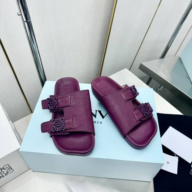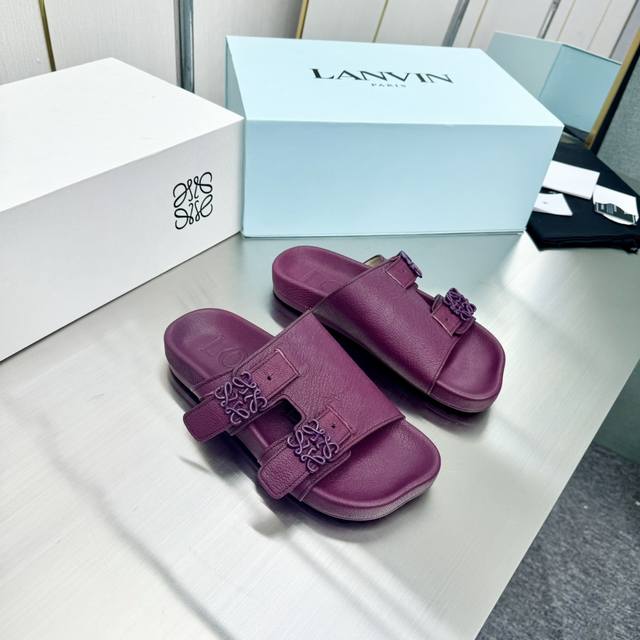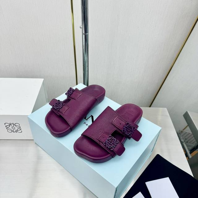 LOEWE 罗意威2055 aw 最新半托 夹趾拖 走秀款鞋面:进口小牛皮内里:进口羊皮里大底:原版开模鞋跟:原版开模1:1码数:35-44