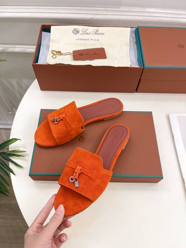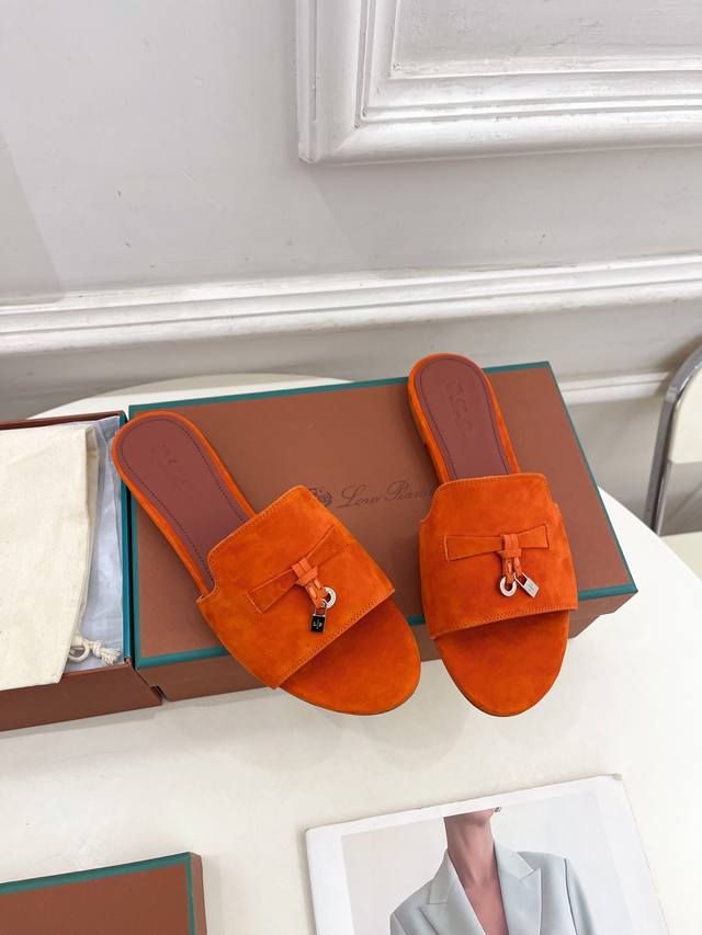 Loro Piana 乐悠翩雅 代购级别2025春夏新品 Summer Charms 经典金属吊坠羊猄面拖鞋 LP是意大利顶级奢侈品牌 低调奢华 设计都是一贯纯