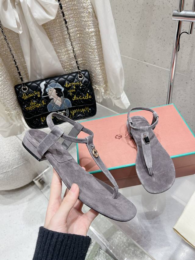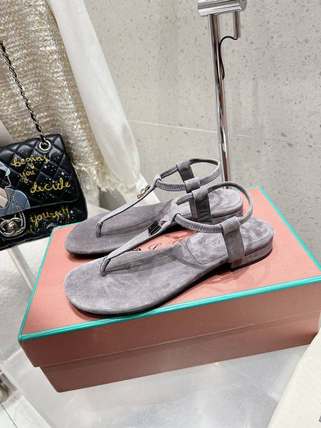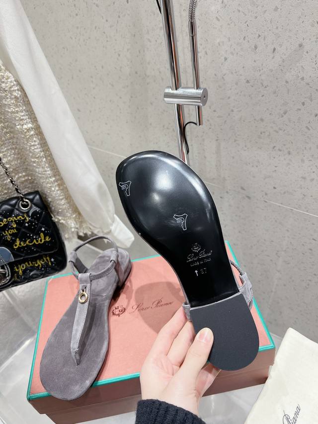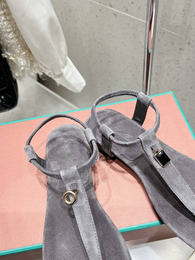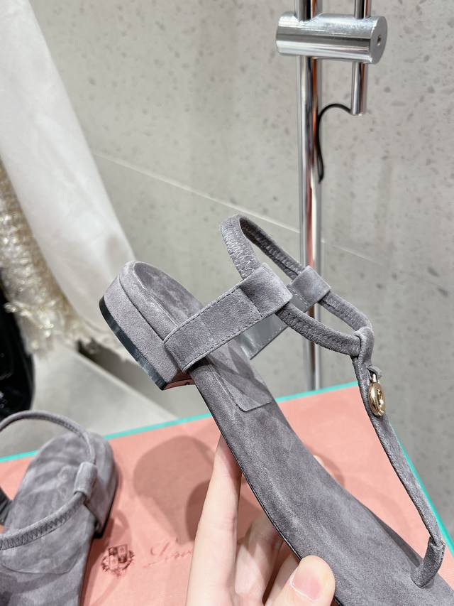 Loro Piana 25春夏LP顶级版本英伦宝石吊坠夹脚平底拖鞋凉鞋