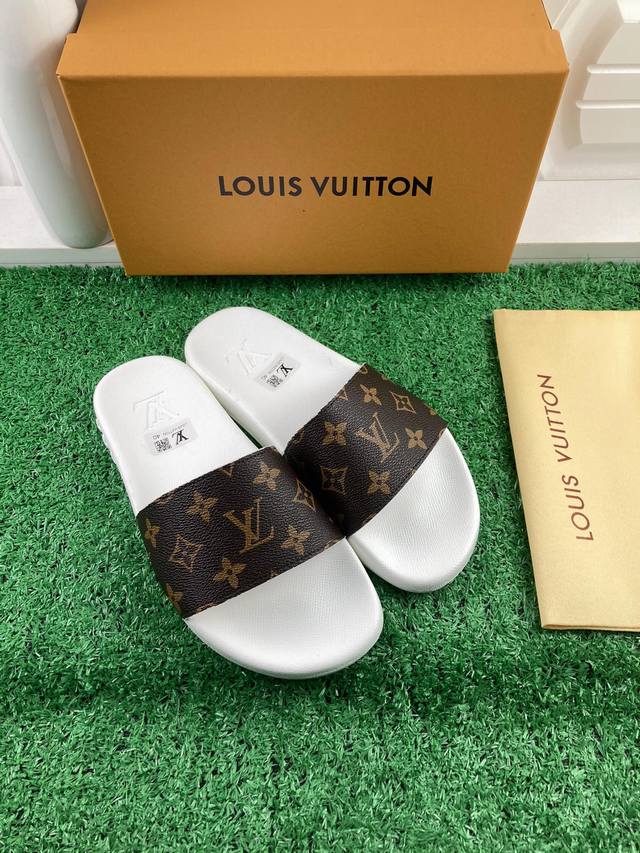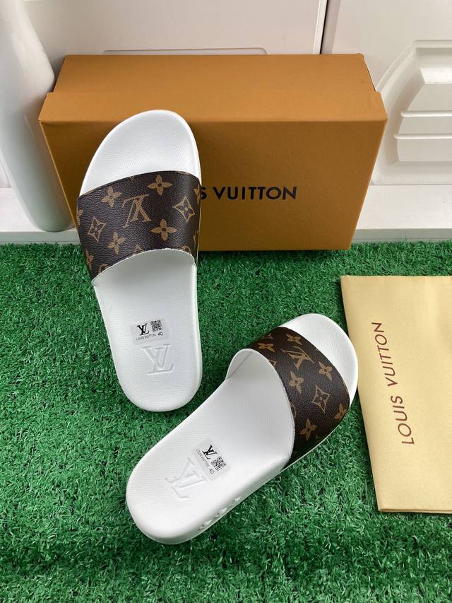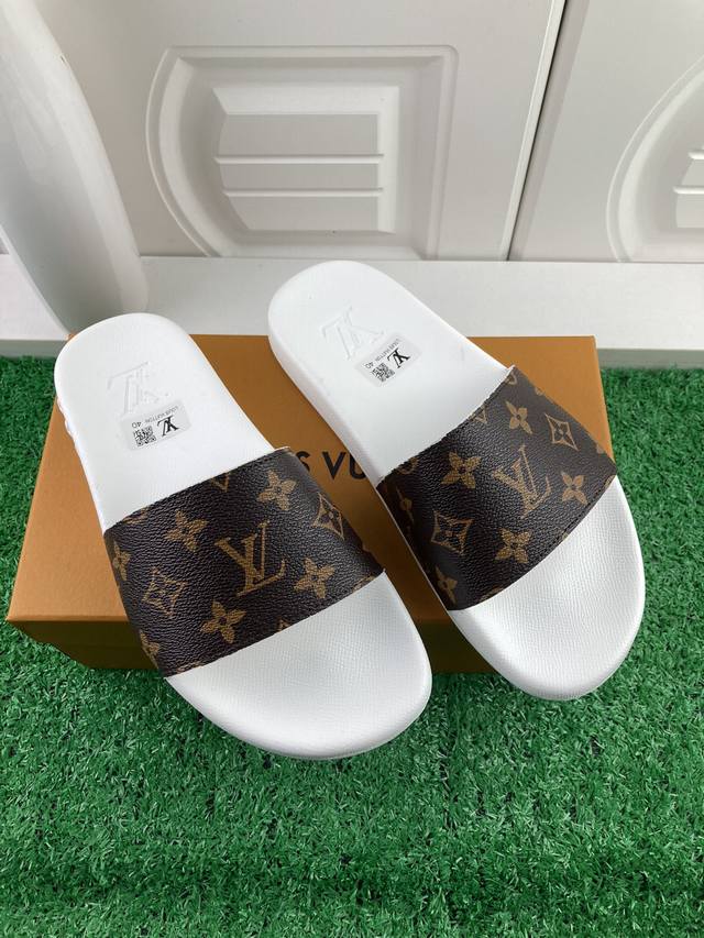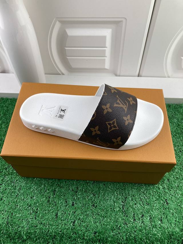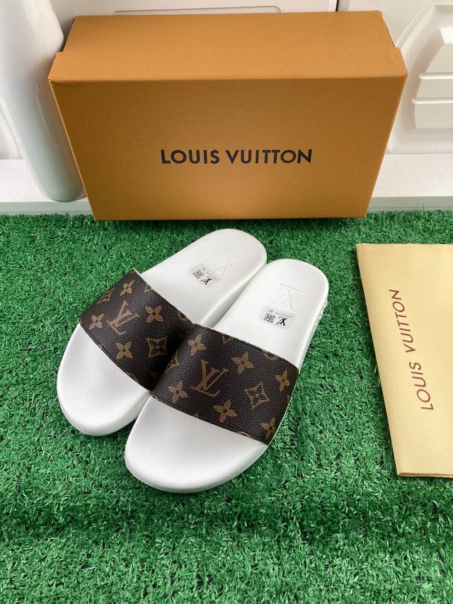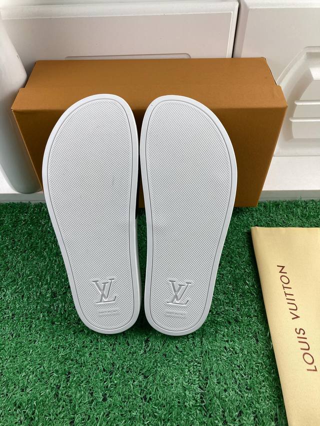 LOUIS VUITON 路易威登情侣拖鞋,原版1.1订做,专柜经典款。鞋身高温附带logo,大底专柜附带logo ,任何细节都不错过 这款拖鞋专柜特别热卖材质