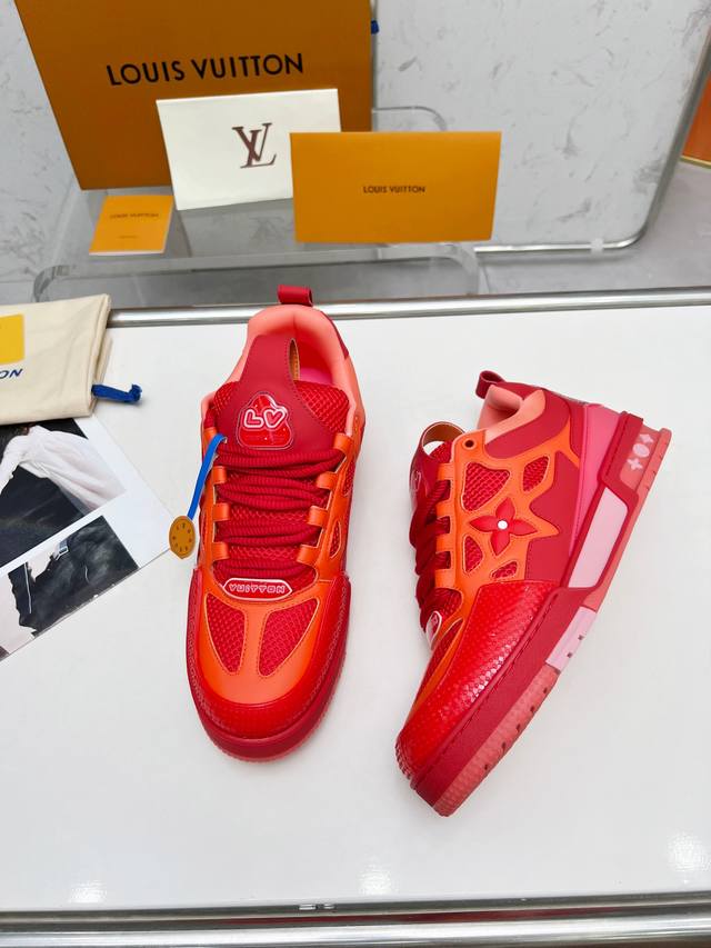 LOUIS VUITTON LV路易威登 男女同款 !鞋底超级轻便,天花板级 油边工艺! 鞋面:3D彩印摔纹牛皮!耐磨防滑三色TPU大底! 35-46