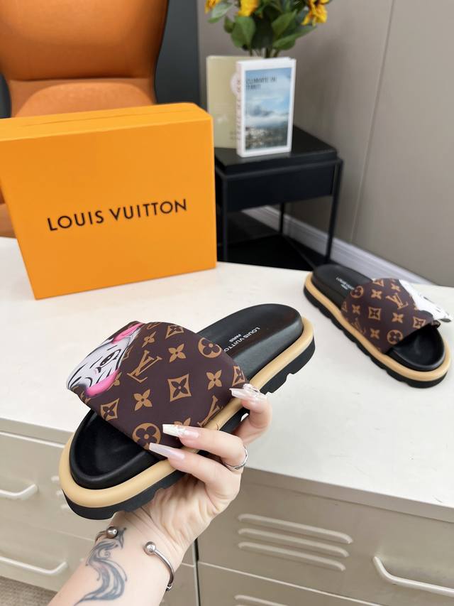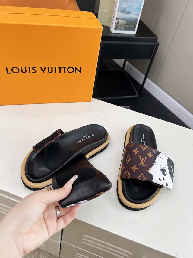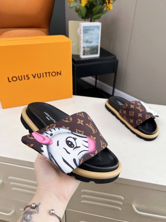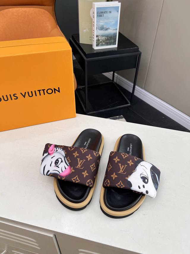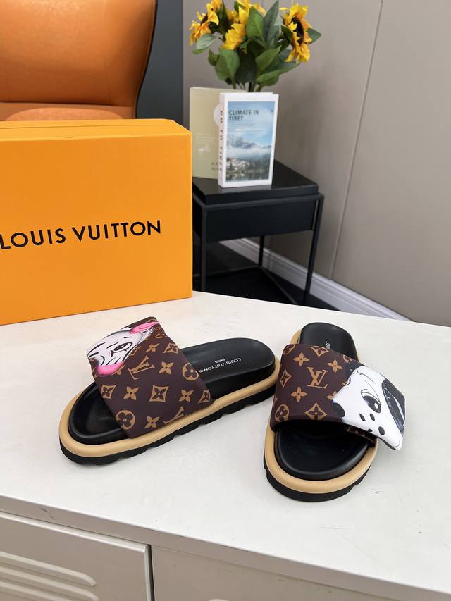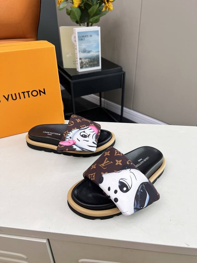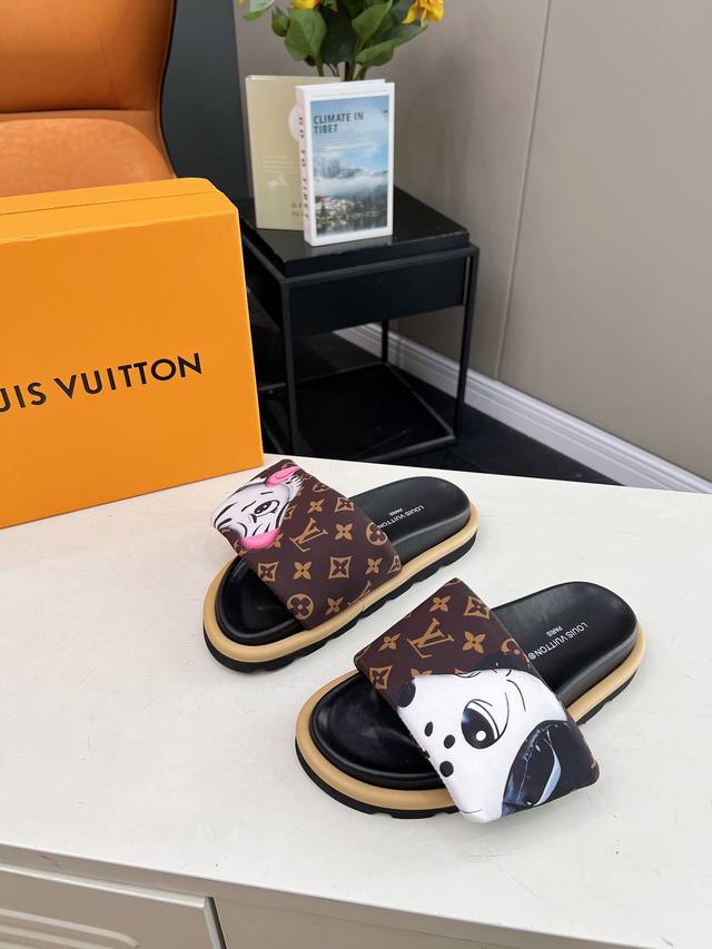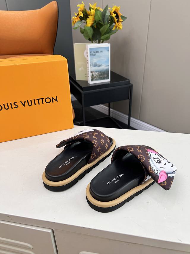 / lv驴牌l家 2024爆款 浮雕logo 压花 凉拖鞋 本款 ol llow comfort 平底凉拖取材科技织物,以高频压印技术重绎 monogram 图案。