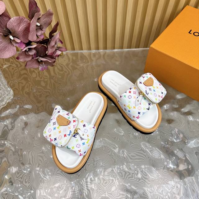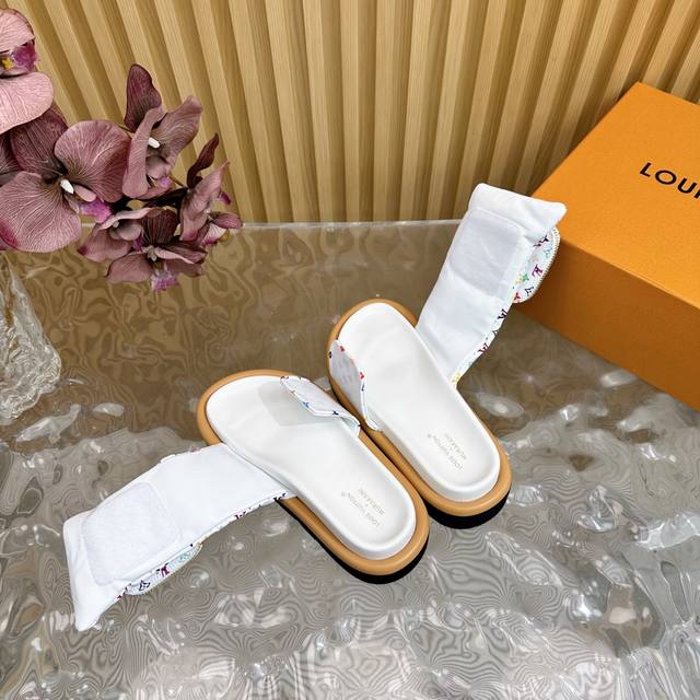 专柜LV驴牌爆款 浮雕logo 压花 凉拖鞋 本款 Pool Pillow Comfort 平底凉拖取材科技织物,以高频压印技术重绎 Monogram 图案。柔软加垫鞋面搭配可调节魔术贴,舒适韧性鞋垫再添和谐色彩 硬货上新