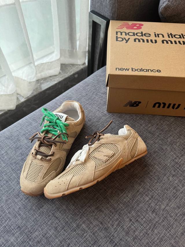 Miu MiuNew Balance 574联名系列、各大品牌都热衷于跨界联名、缪缪这次联名诚意满满非常有亮点鞋面:反绒牛皮、复古又叛逆、令人眼前一亮、内里羊皮、正品一鞋难求、原版全套包装开模组合大底:码数35-40
