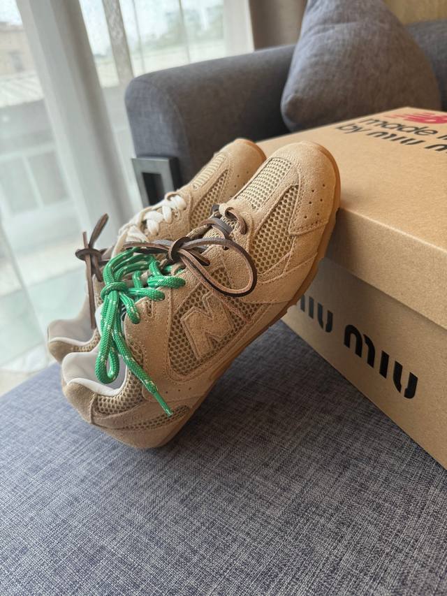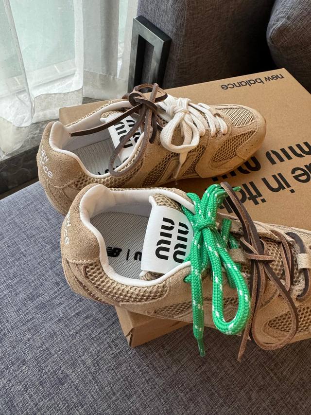 / Miu MiuNew Balance 574联名系列、各大品牌都热衷于跨界联名、缪缪这次联名诚意满满非常有亮点鞋面:反绒牛皮、复古又叛逆、令人眼前一亮、内里羊皮