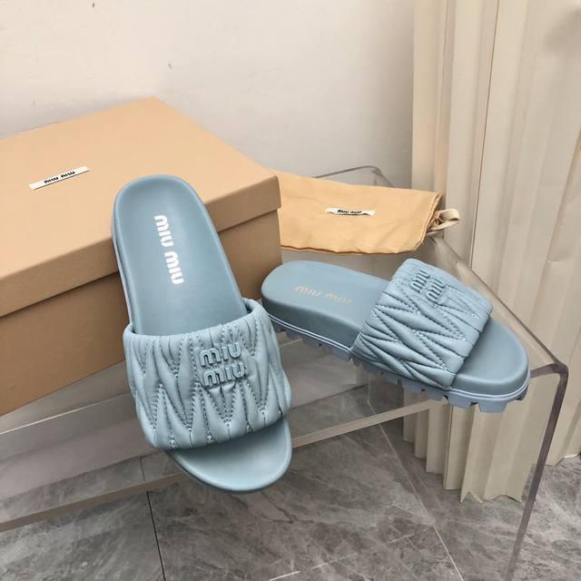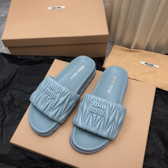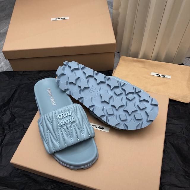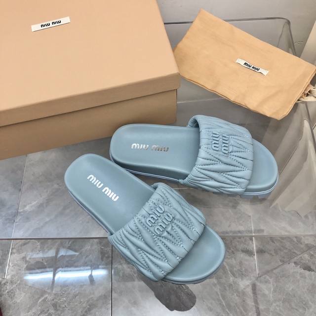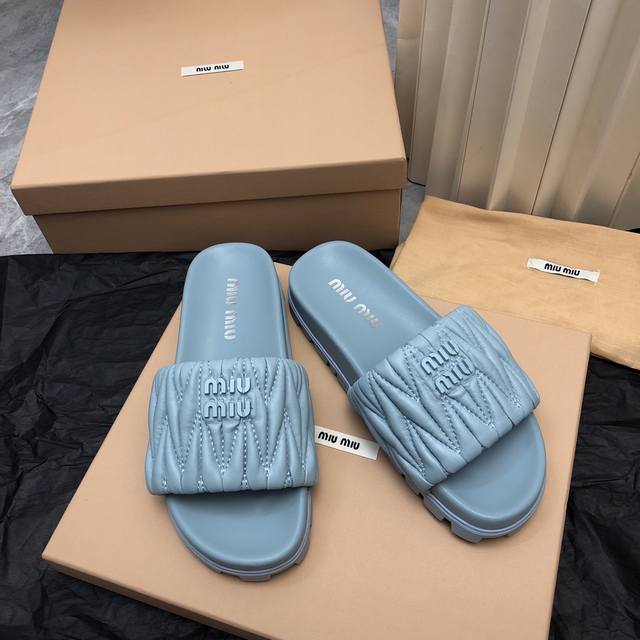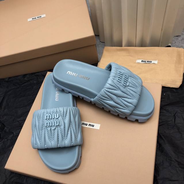 / Miumi*2025ss春夏新款平底小羊皮凉鞋拖鞋 顶级版本 Zp开发 原版拆卸 对版菱格纹 秒杀市面普通版本,miumiu真的太少女啦!小羊皮超级软糯 舒适度