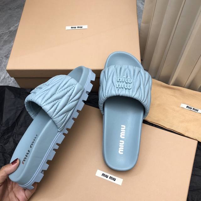 Miumi*2025ss春夏新款平底小羊皮凉鞋拖鞋 顶级版本 Zp开发 原版拆卸 对版菱格纹 秒杀市面普通版本,miumiu真的太少女啦!小羊皮超级软糯 舒适度