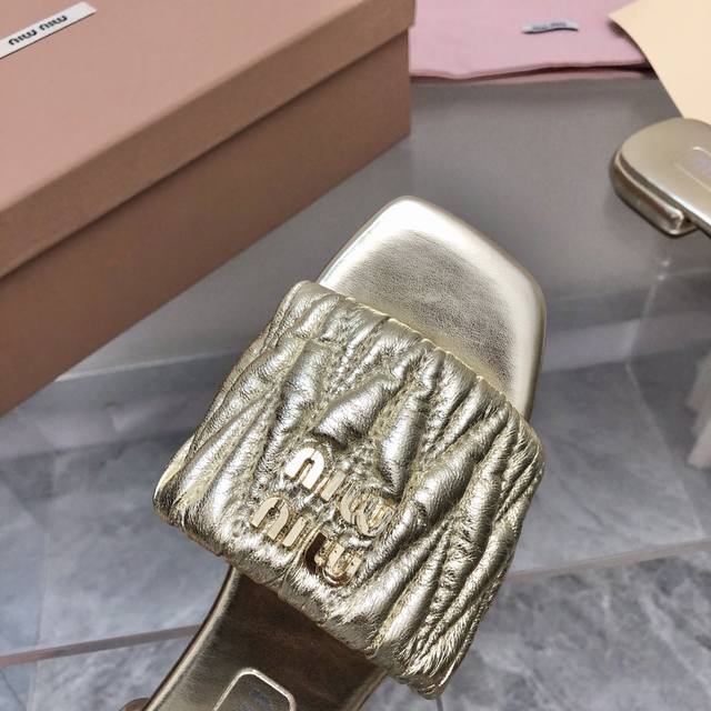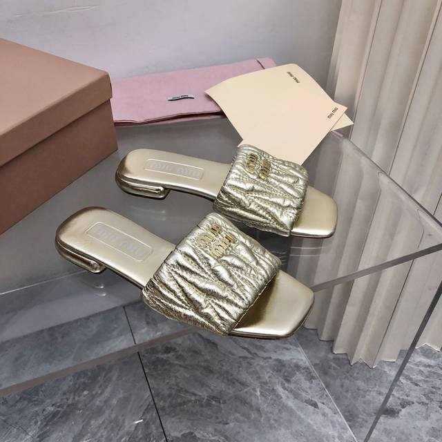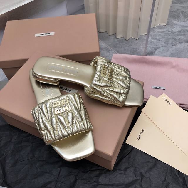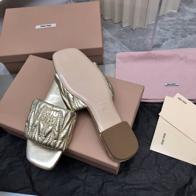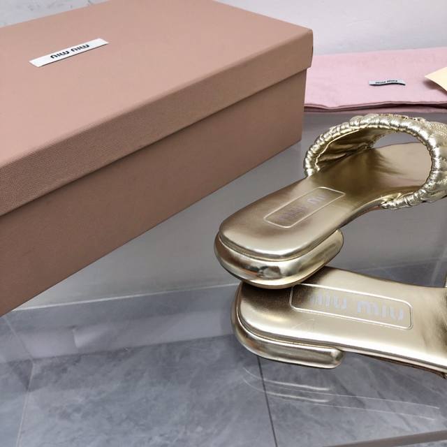 Miumi*2025ss春夏新款平底小羊皮凉鞋拖鞋