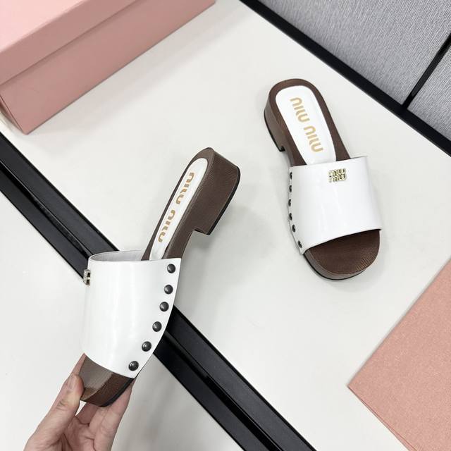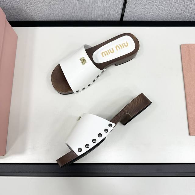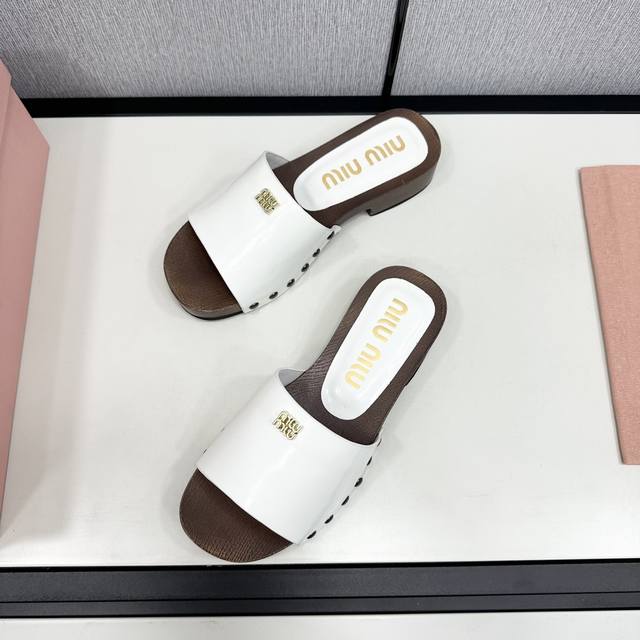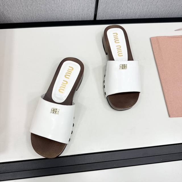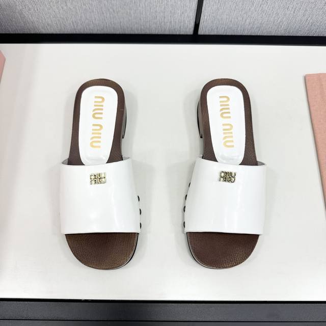 MiuMiu缪缪春夏秀款拖鞋 25秀款出镜率最高单品 简约鞋面金色miumiu字母logo非常的醒目