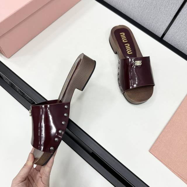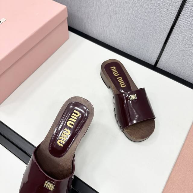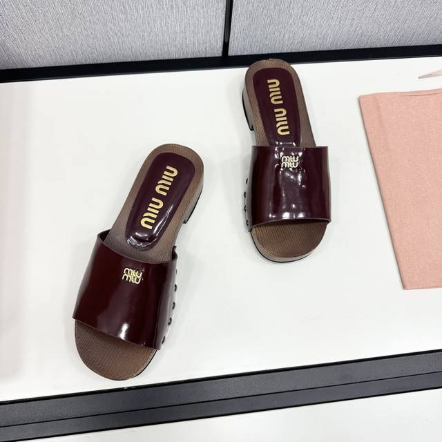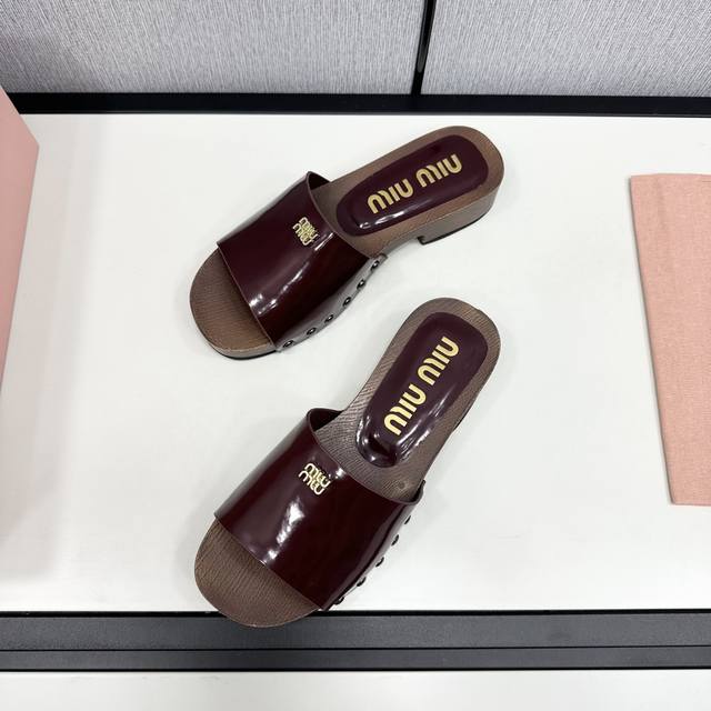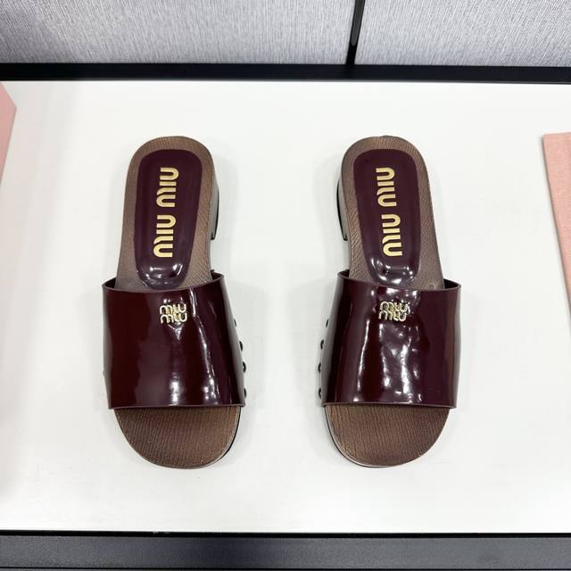 MiuMiu缪缪春夏秀款拖鞋 25秀款出镜率最高单品 简约鞋面金色miumiu字母logo非常的醒目