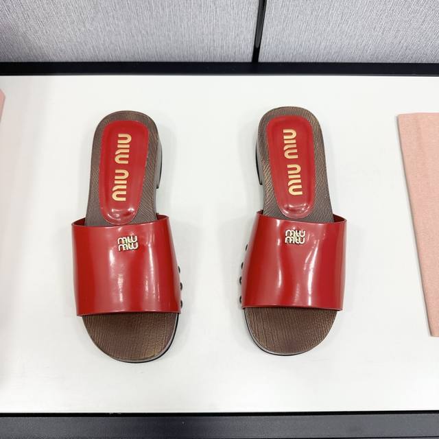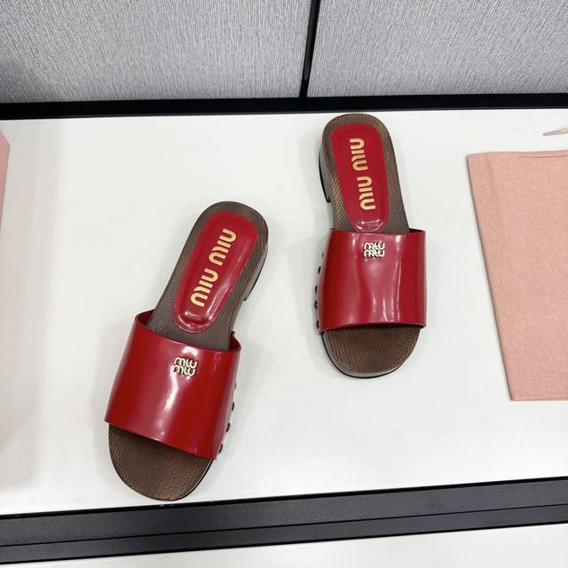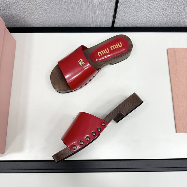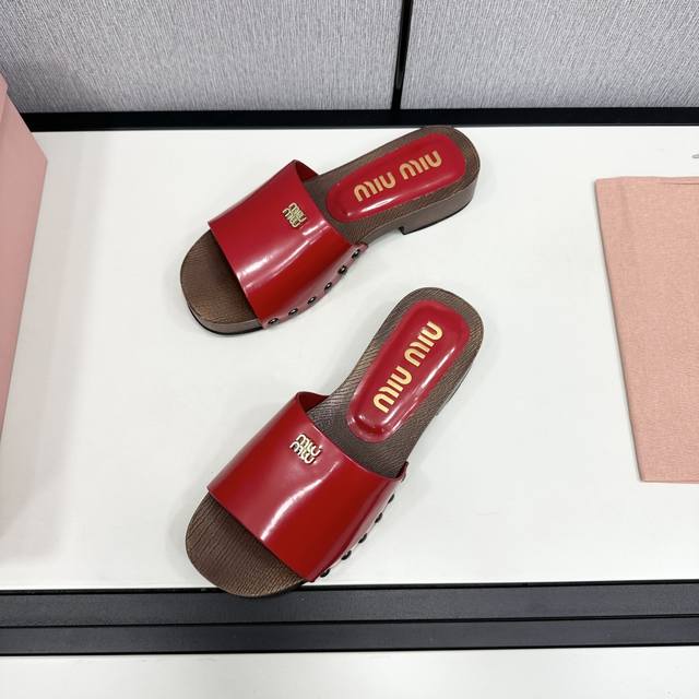 MiuMiu缪缪春夏秀款拖鞋 25秀款出镜率最高单品 简约鞋面金色miumiu字母logo非常的醒目