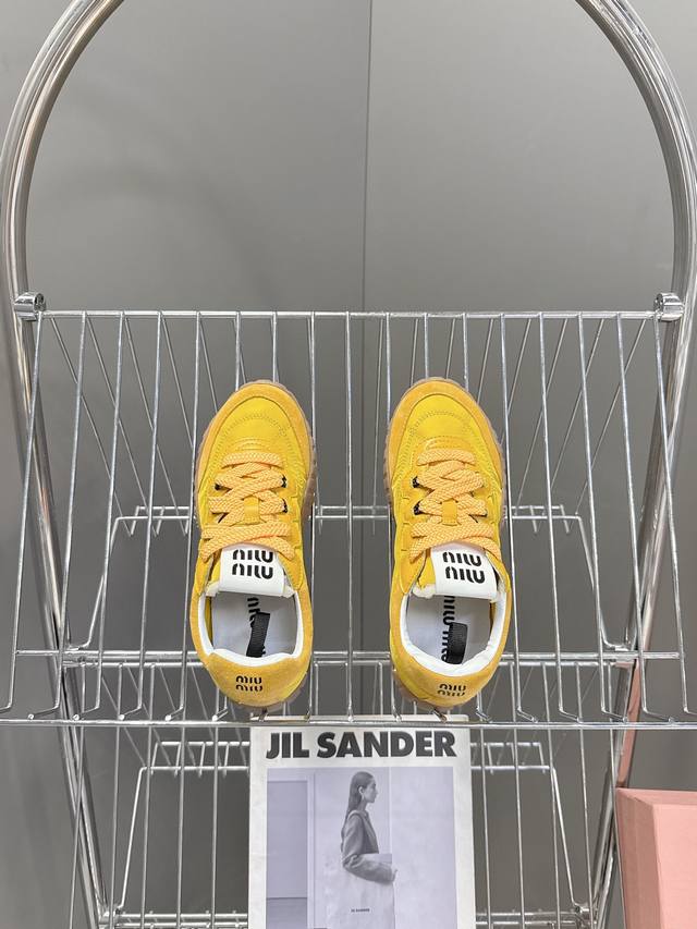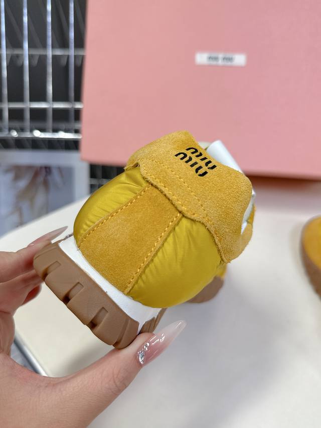 专柜RMB8930购入开发 miumiu最新爆款 前卫大胆的设计,Miu Miu风格融于此款厚底帆布运动鞋的简约线条,别致徽标饰于鞋舌与背面,点缀复古设计,平添标志性元素!厚底设计定义前卫的现代风格面料:原版定制布料 牛反绒 内里:原版进口柔软羊羔毛 鞋底:原版开模防滑橡胶大底 Size:35-40 40定制不退换