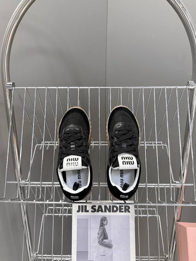 专柜RMB8930购入开发 miumiu最新爆款 前卫大胆的设计,Miu Miu风格融于此款厚底帆布运动鞋的简约线条,别致徽标饰于鞋舌与背面,点缀复古设计,平添标志性元素!厚底设计定义前卫的现代风格面料:原版定制布料 牛反绒 内里:原版进口柔软羊羔毛 鞋底:原版开模防滑橡胶大底 Size:35-40 40定制不退换
