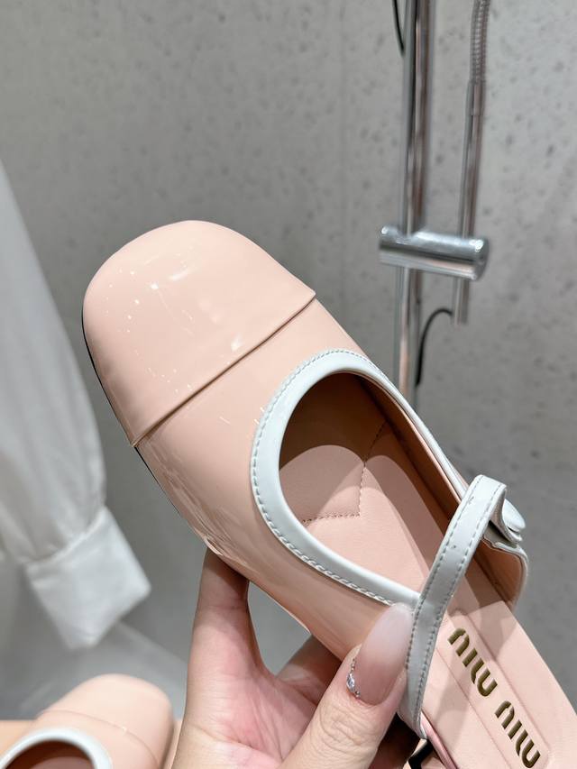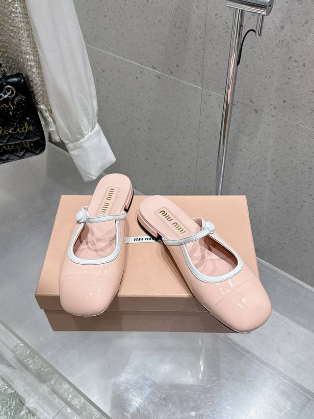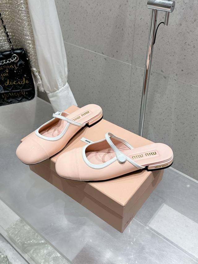 MIUMIU 2025 新款玛丽珍半拖皮鞋 原版1:1订制漆皮牛皮面料 羊皮内里意大利进口真皮大底码数:35-39 40 41订做不退换