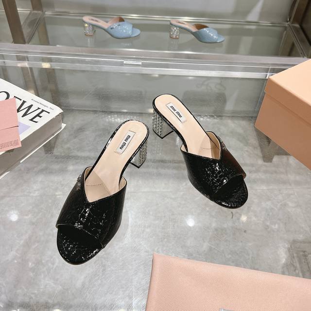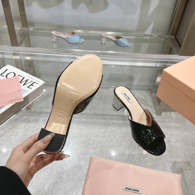 miumiu2025ss春夏新款跟鞋漆皮凉鞋拖鞋