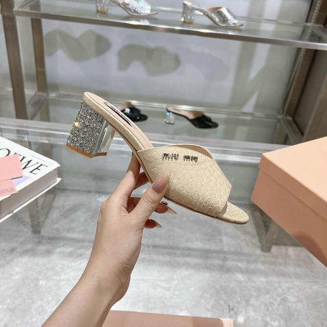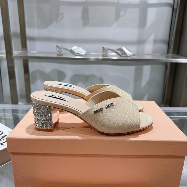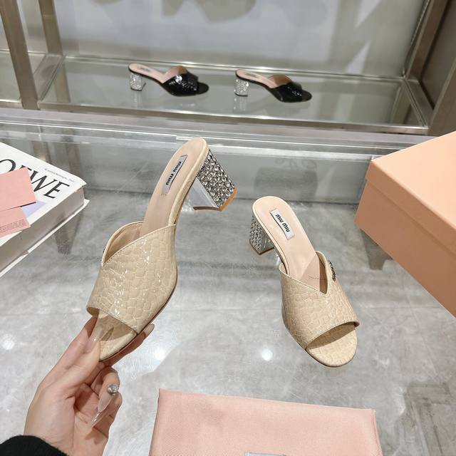 miumiu2025ss春夏新款跟鞋漆皮凉鞋拖鞋