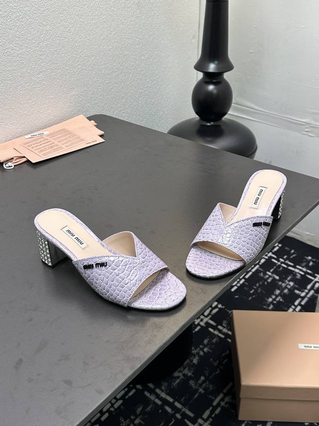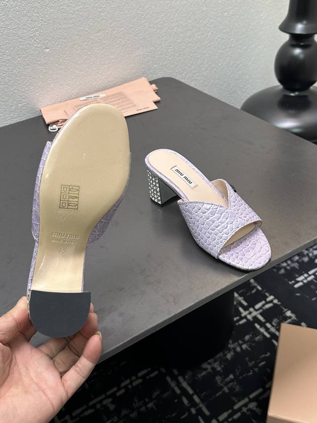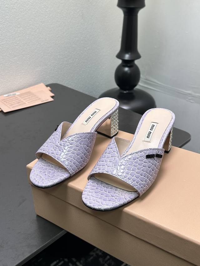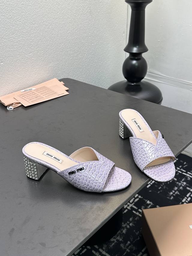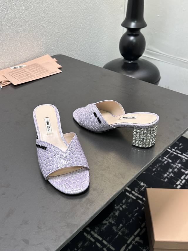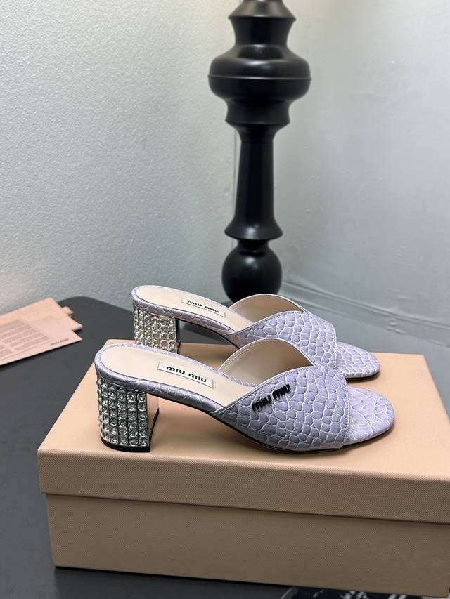 MiuMiu*2025ss缪缪春夏新款高跟镶钻小牛皮凉鞋拖鞋