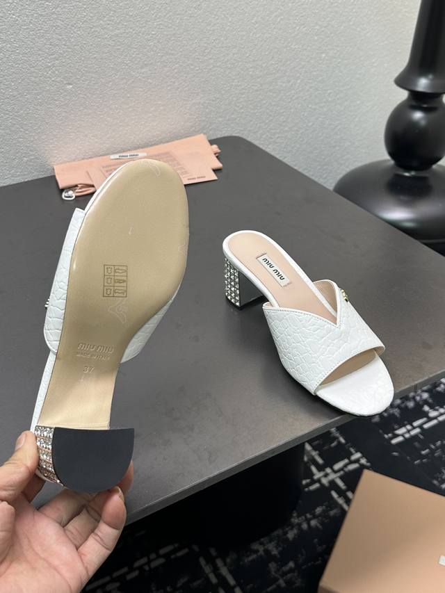 MiuMiu*2025ss缪缪春夏新款高跟镶钻小牛皮凉鞋拖鞋