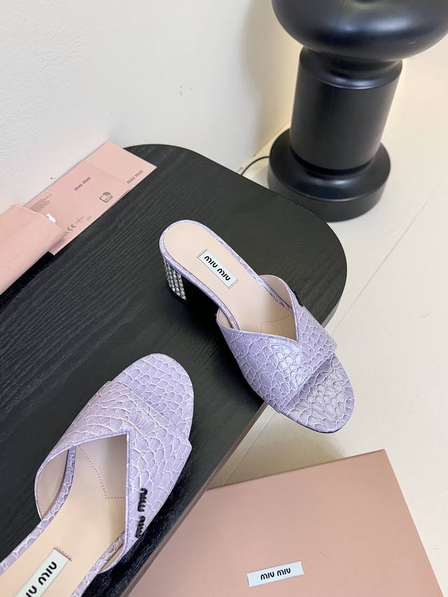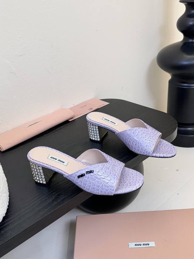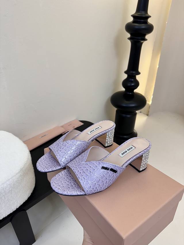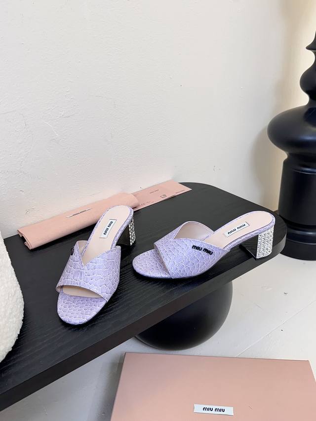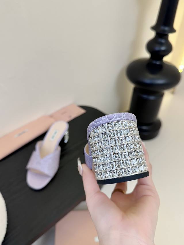 MiuMiu*2025ss缪缪春夏新款高跟镶钻小牛皮凉鞋拖鞋