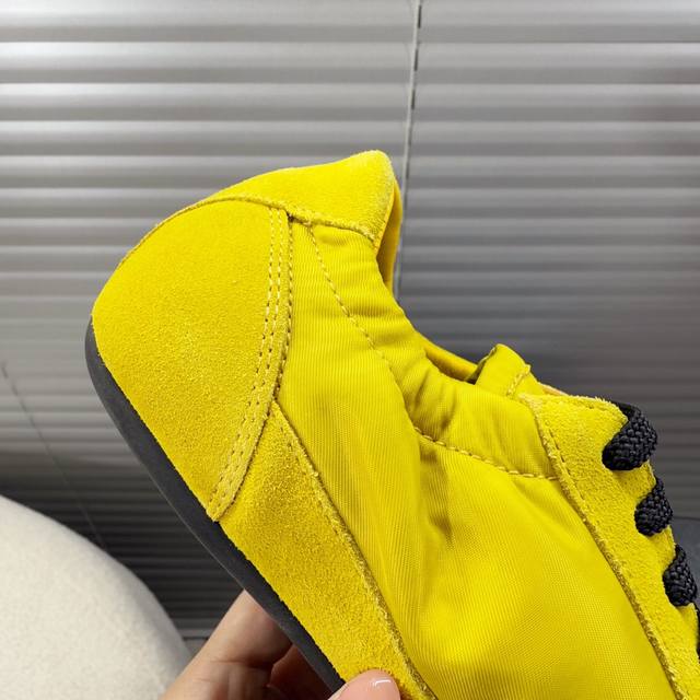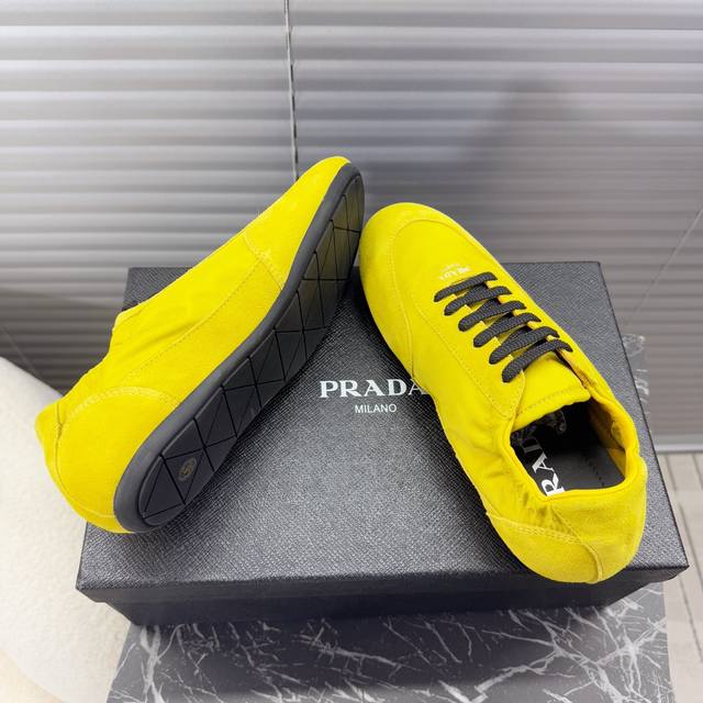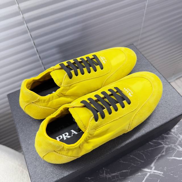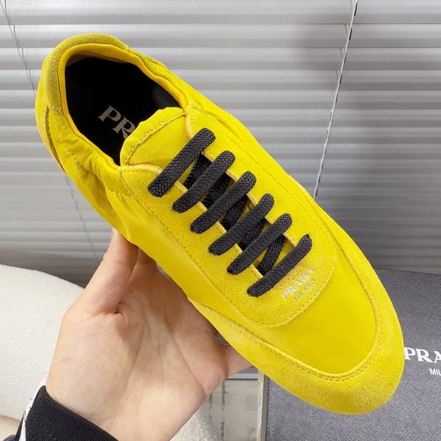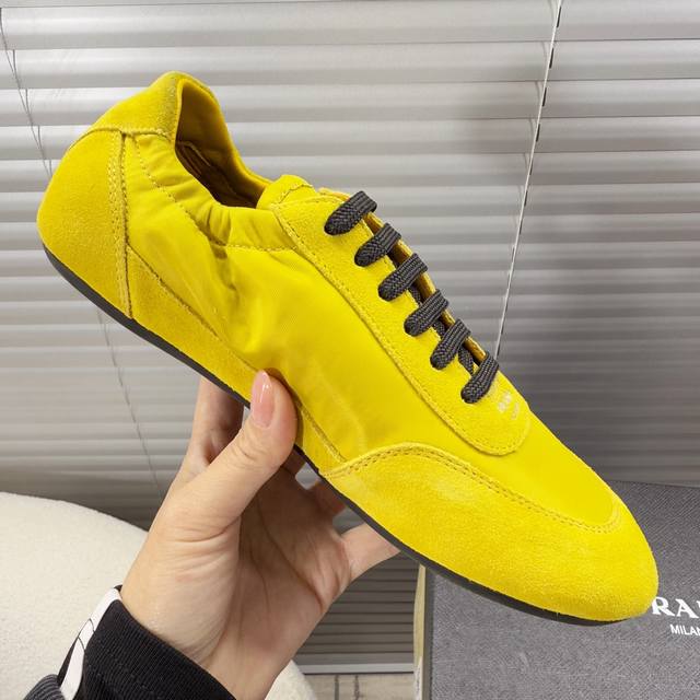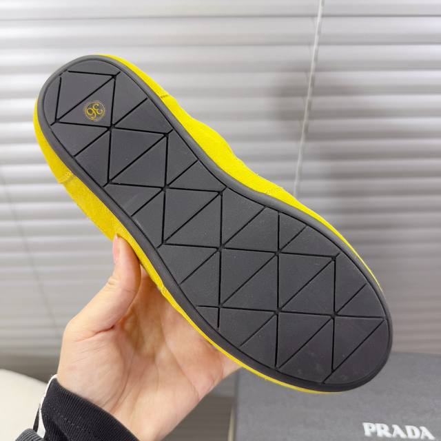 Prada普拉达2025早春新款运动鞋,德训鞋,轻盈舒适的特性打造更加松弛随性感,侧帮弹力设计更加方便穿脱哦~原版鞋面麂皮拼接,垫脚小羊皮,TPU大底 35-7