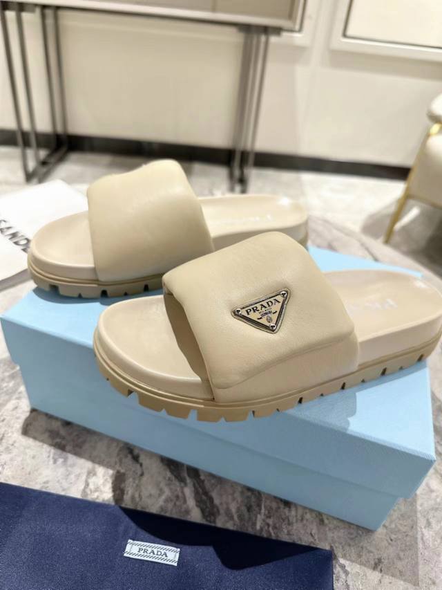 Prada 普拉达 新款面包一字拖女面皮:超软全粒面绵羊皮内里:进口羊皮里,原版1:1开发三角扣,中大底为原版暴力拆解复刻开发码数:35-39 34、40、41