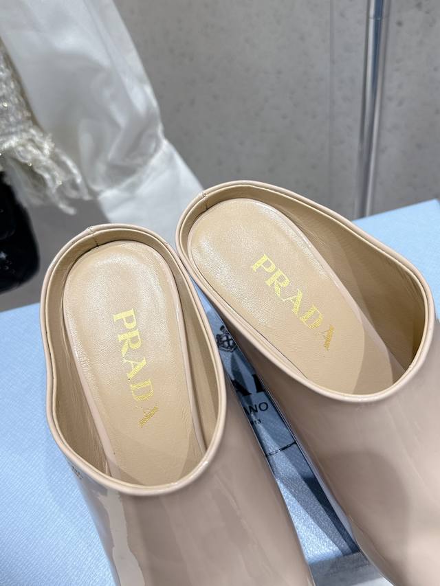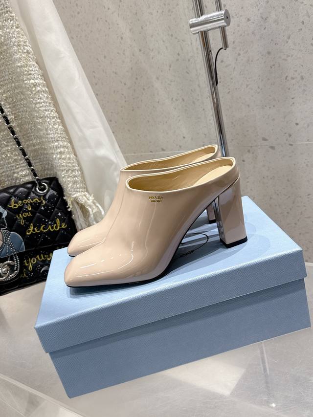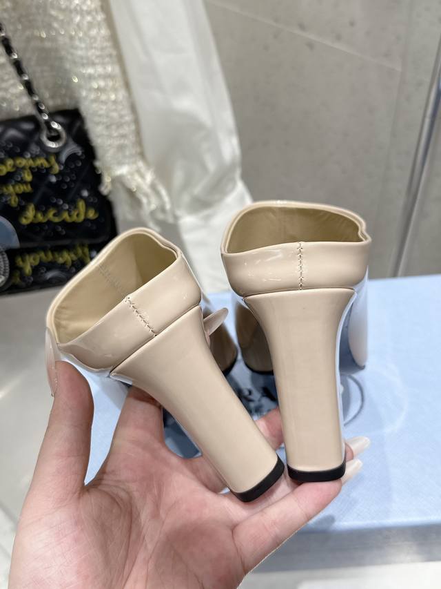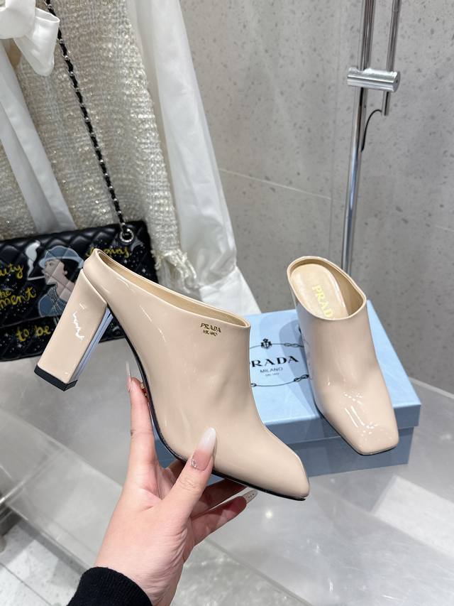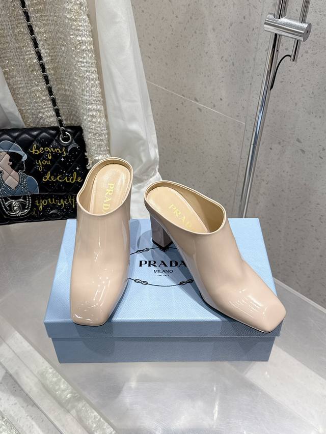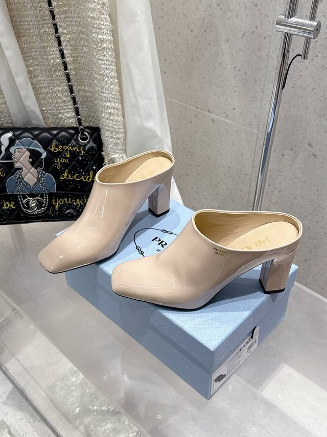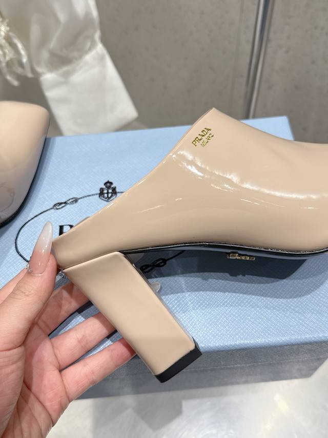 prada 普拉达 早春新款 绝美方头粗跟高跟半拖鞋