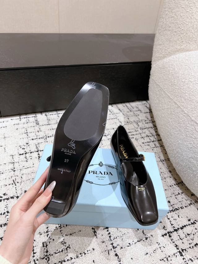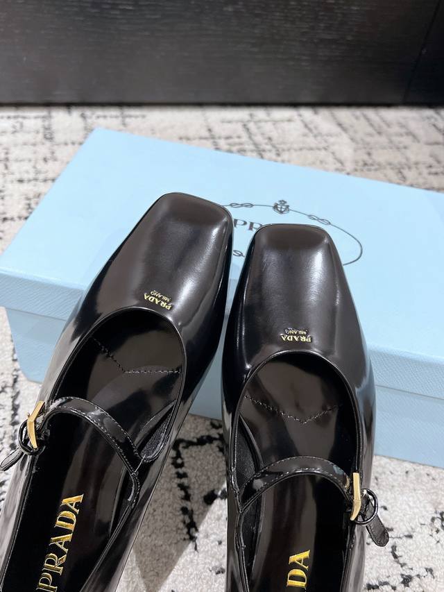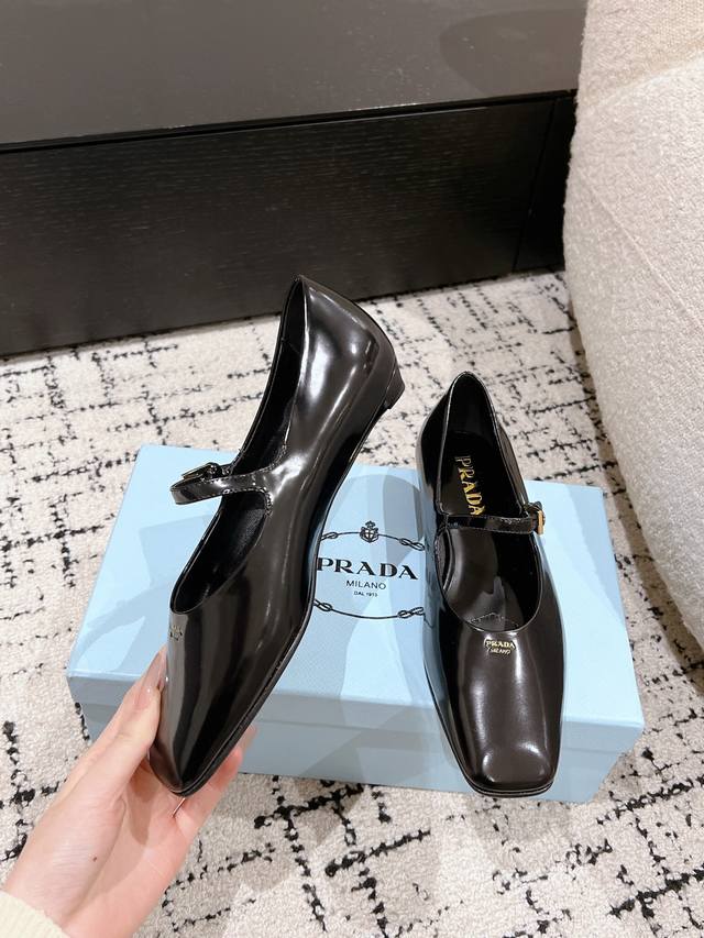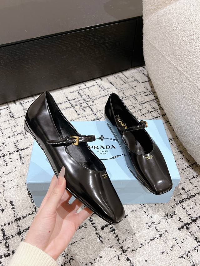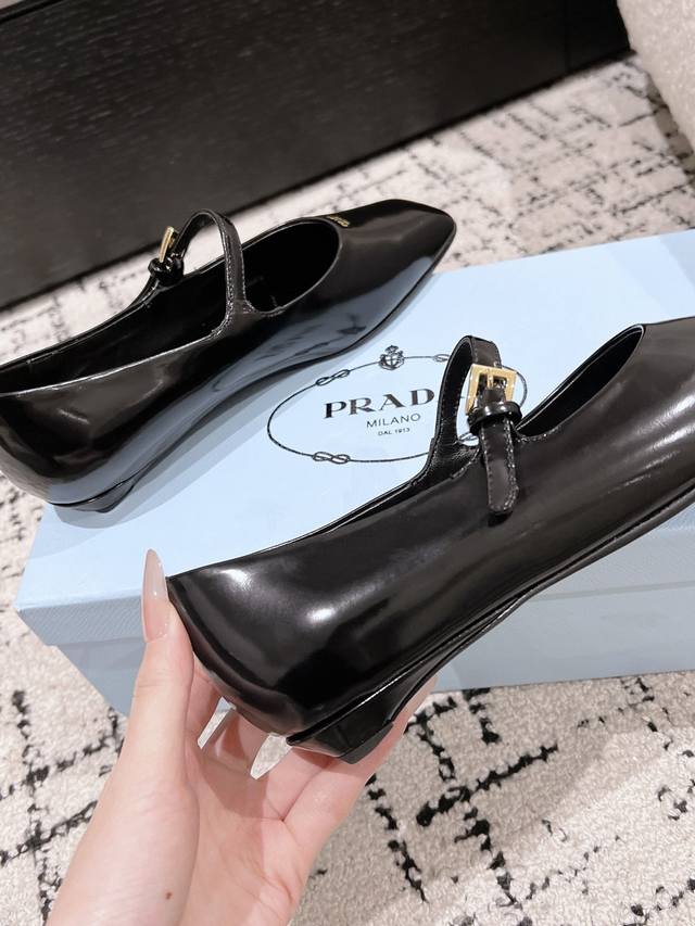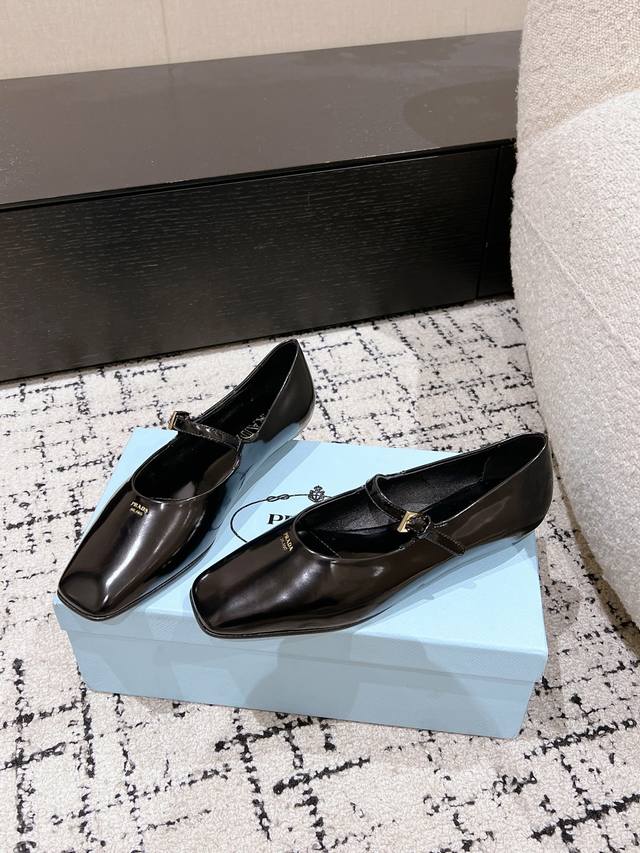 Prada 普拉达 25ss早春新款 绝美方头平底玛丽珍鞋