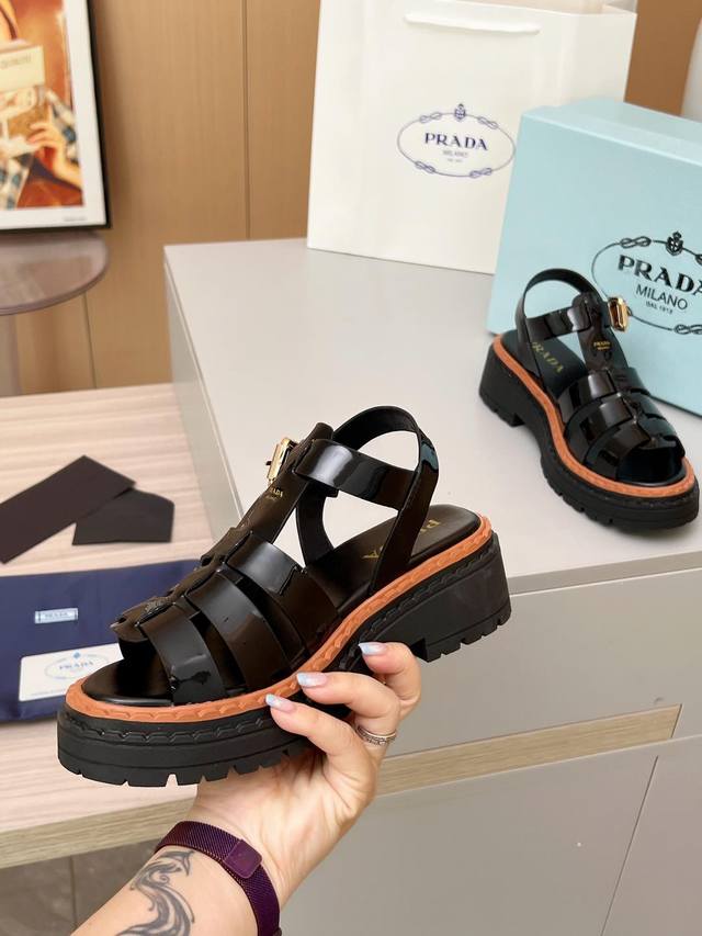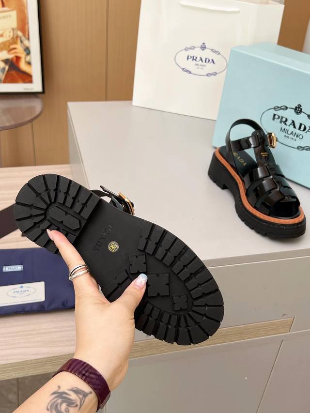 PRADA 普拉达 25ss 春夏新款 凉鞋简单的设计大概就是它最让人喜欢的点 不是烂大街的那种 很有自己的品牌个性面料采用小牛皮 内里垫脚混种羊皮 跟高:4.