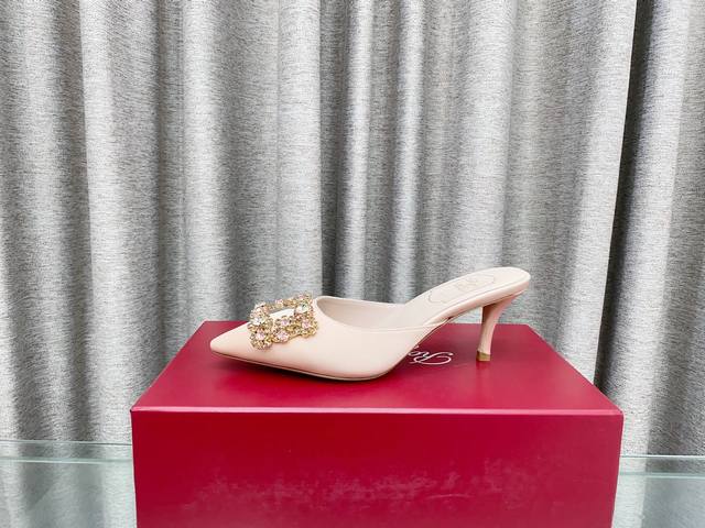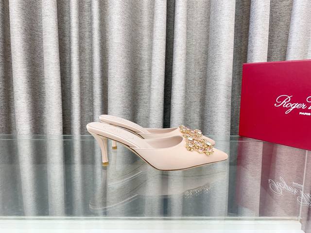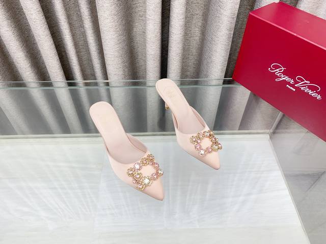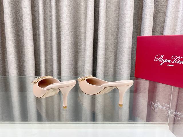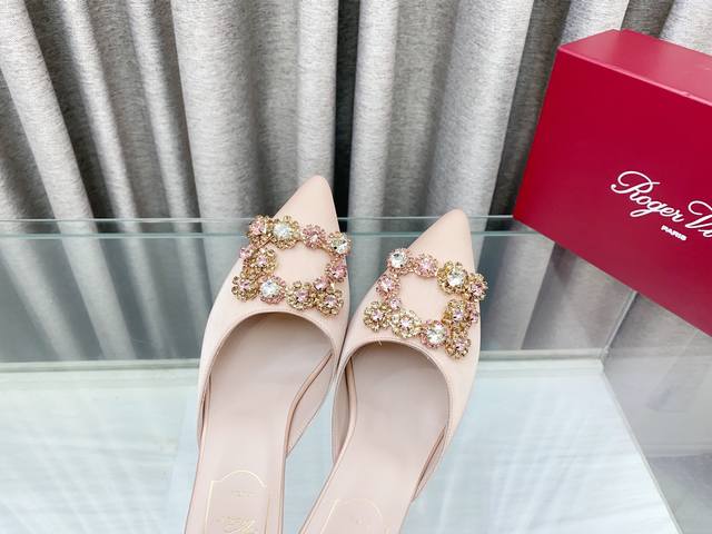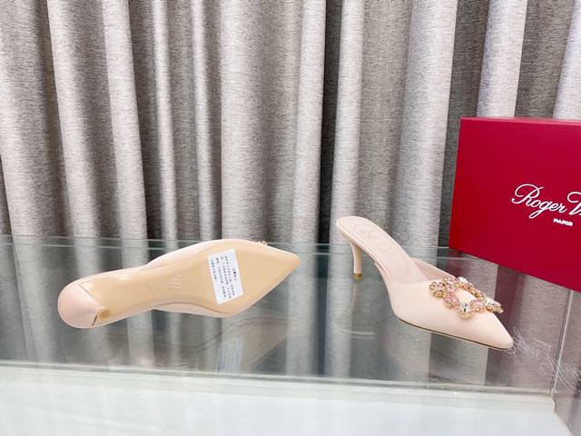 Roger vivier半拖跟鞋,香港专柜同步发售、经典款小尖头,秀气的女人味十足!鞋跟高度舒适,面料采用进口特殊材料,内里采用混种羊皮里,鞋垫和内里一样,大底