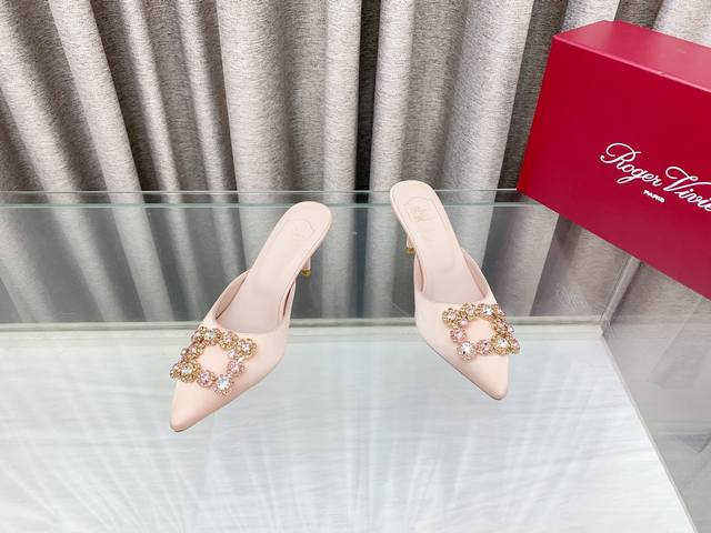 Roger vivier半拖跟鞋,香港专柜同步发售、经典款小尖头,秀气的女人味十足!鞋跟高度舒适,面料采用进口特殊材料,内里采用混种羊皮里,鞋垫和内里一样,