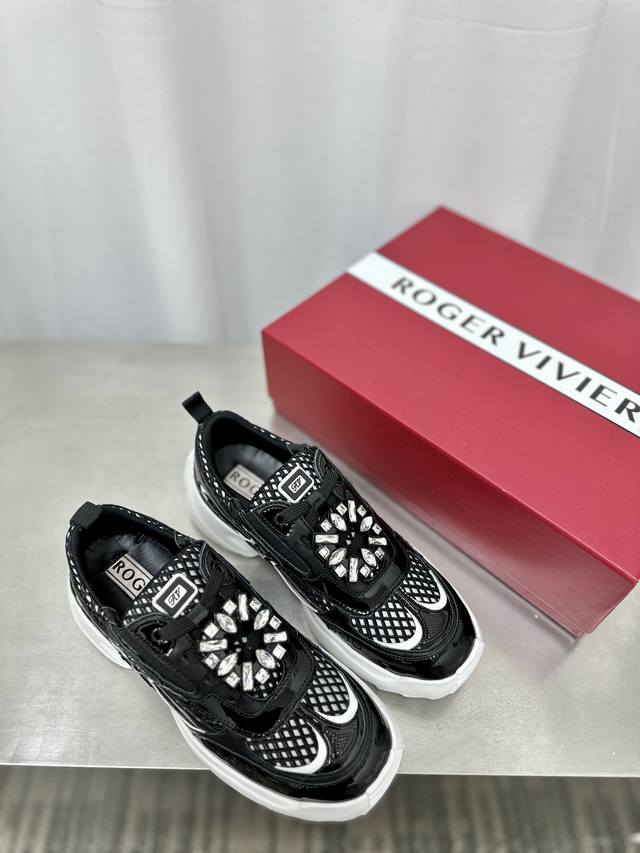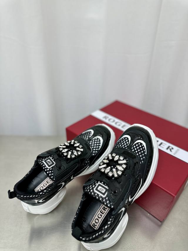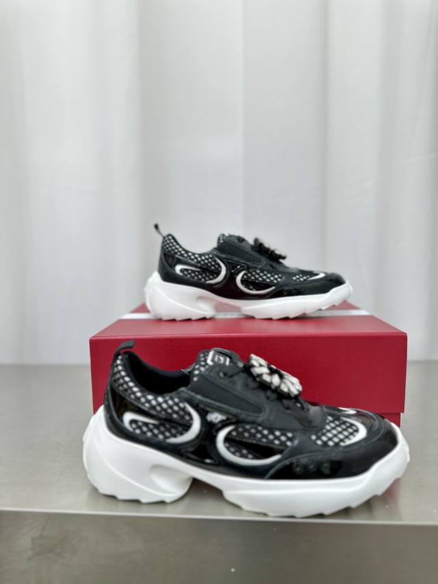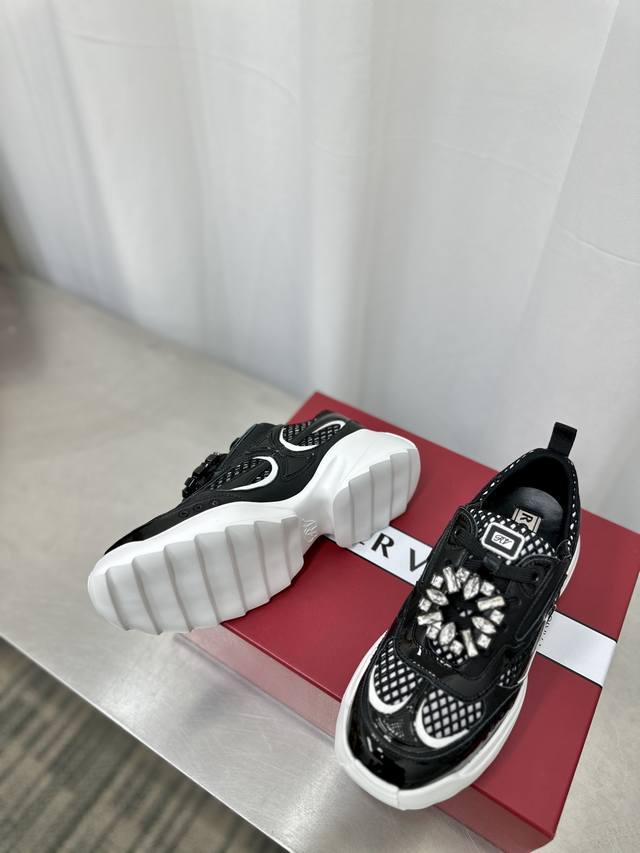 Roger Vivier 25ss新款 Viv Motor皮革拼织物休闲鞋
