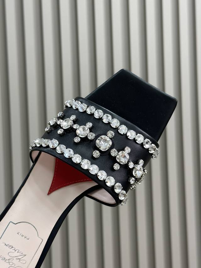 Roger Vivier 先生倾心打造的系列经典作品开创了鞋履奢华精致风尚,本款Strass Heel Disco 穆勒鞋就融合品牌传统代表作创意,由柔软的纳帕皮革手工制作,以闪钻镶嵌后跟,鞋面也点缀闪钻和大珠片,内底嵌以心形图案。绝美单品,手工缝钻! size 35-41