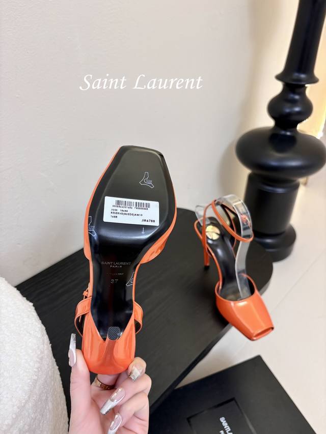 Saint Laurent 圣罗兰细跟坡跟鱼嘴凉鞋Lee金属钻链条尖头高跟鞋YSL姐姐的美丽尤物高跟鞋 又是人间圣罗兰 Rose同款的高跟鞋化很好修饰脚型,奢华金属链 这几年SLP是在高跟鞋越来越懂女人了朝摒奔了防水台款的尴尬设计印象ysl绝美高跟鞋