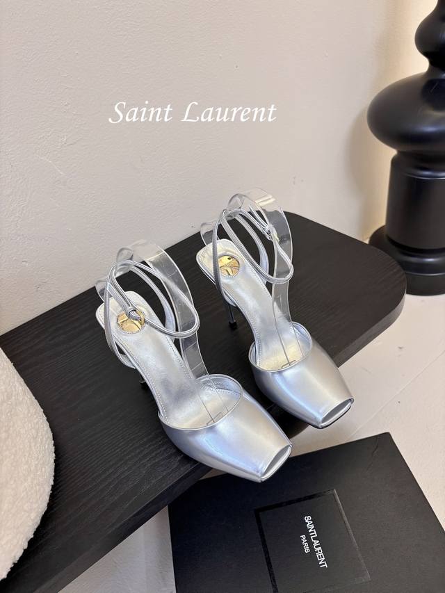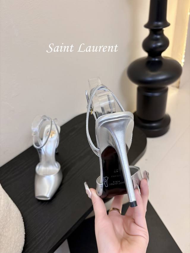 Saint Laurent 圣罗兰细跟坡跟鱼嘴凉鞋Lee金属钻链条尖头高跟鞋YSL姐姐的美丽尤物高跟鞋 又是人间圣罗兰 Rose同款的高跟鞋化很好修饰脚型,奢华金属链 这几年SLP是在高跟鞋越来越懂女人了朝摒奔了防水台款的尴尬设计印象ysl绝美高跟鞋