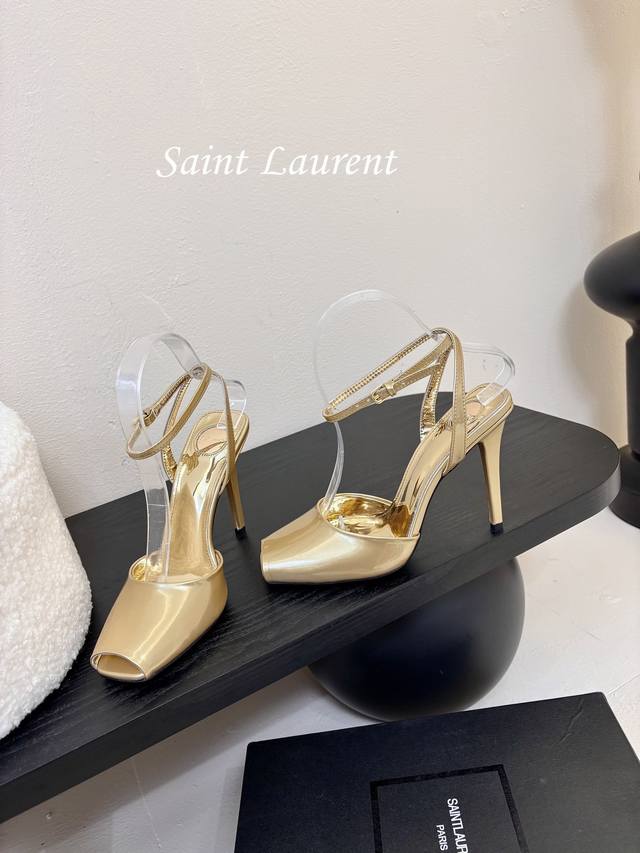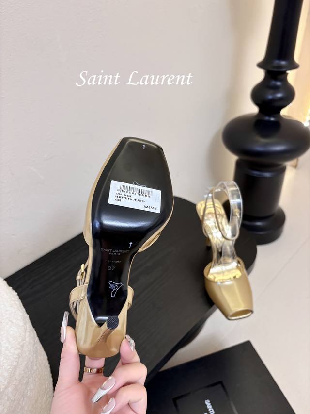 Saint Laurent 圣罗兰细跟坡跟鱼嘴凉鞋Lee金属钻链条尖头高跟鞋YSL姐姐的美丽尤物高跟鞋 又是人间圣罗兰 Rose同款的高跟鞋化很好修饰脚型,奢华金属链 这几年SLP是在高跟鞋越来越懂女人了朝摒奔了防水台款的尴尬设计印象ysl绝美高跟鞋