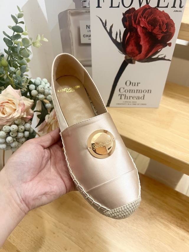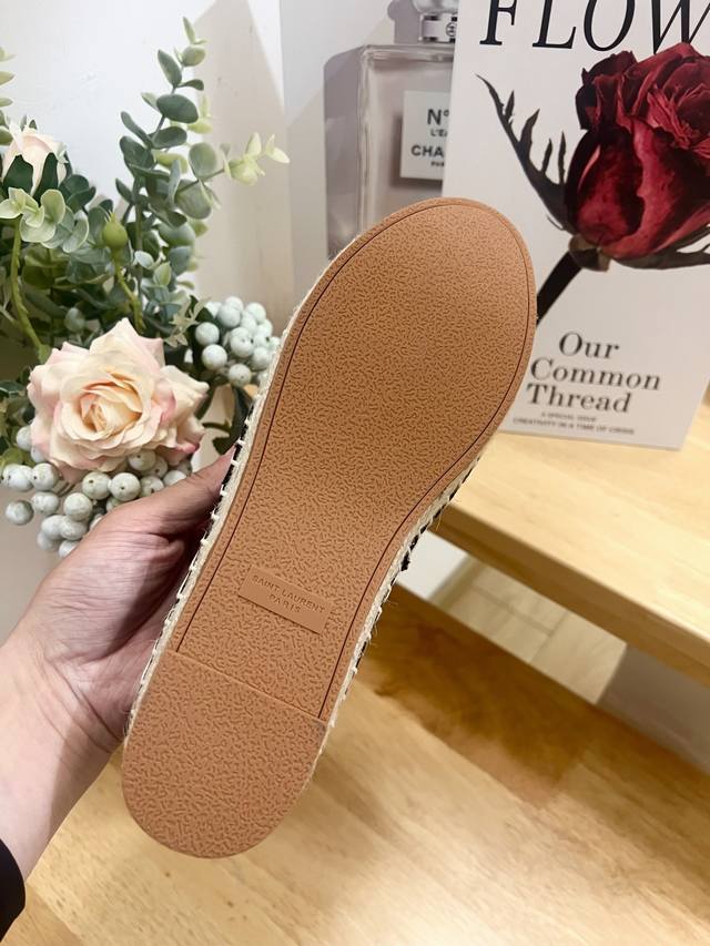 SAINT LAURENT 圣罗兰 2025年 早春 LOGO渔夫鞋 YSL标志、麻绳中底和内底。收起真丝橡胶鞋底码数:36-41西班牙制造