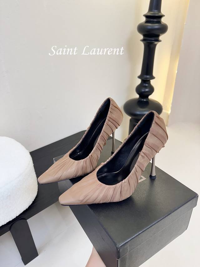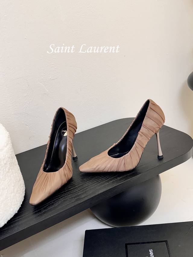 Saint Laurent 圣罗兰Lee金属钻链条尖头高跟鞋YSL姐姐的美丽尤物高跟鞋 又是人间圣罗兰 Rose同款的高跟鞋化很好修饰脚型,奢华金属链 这几年S