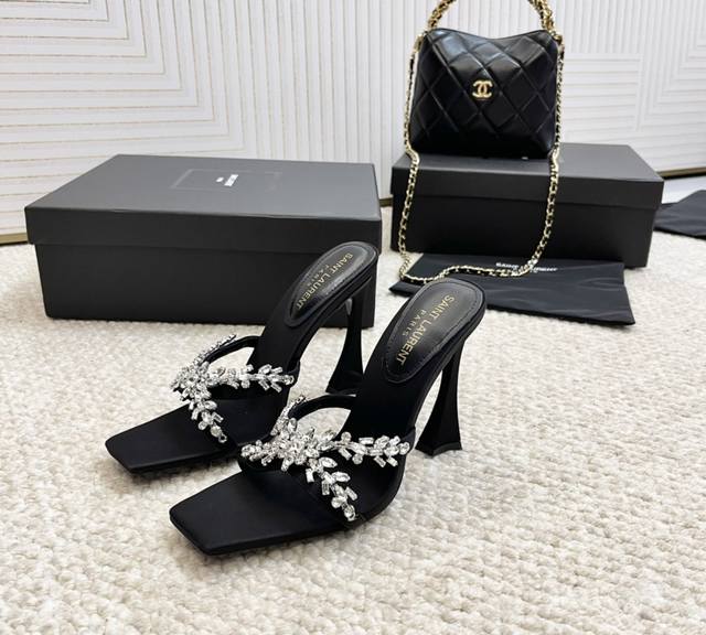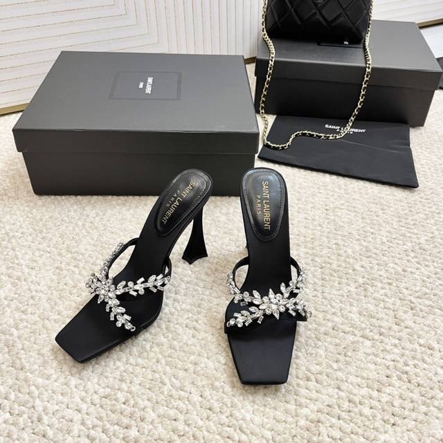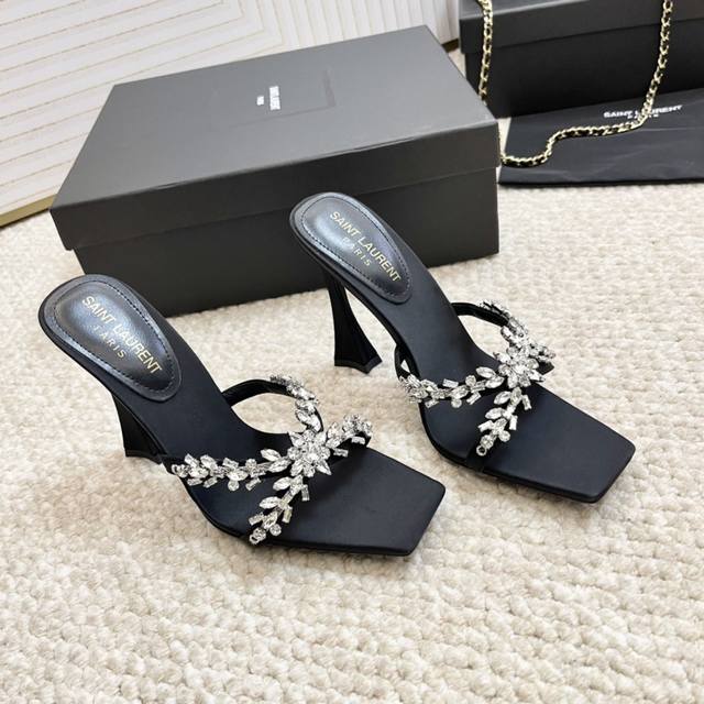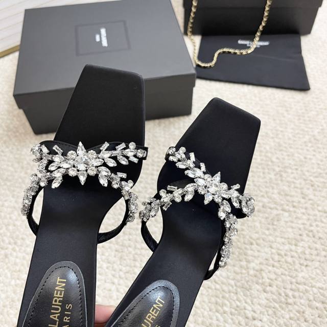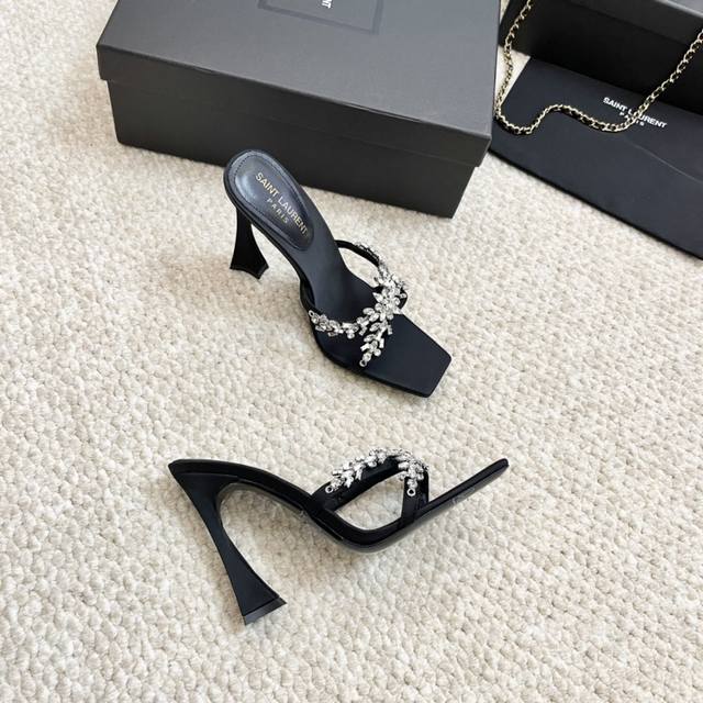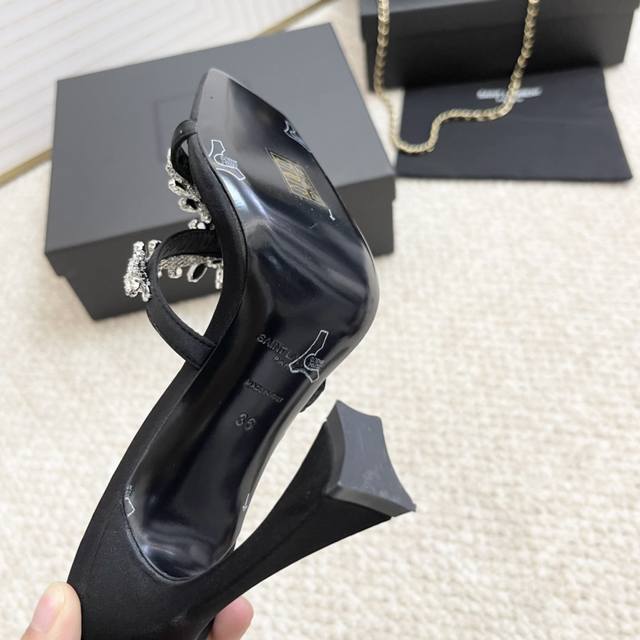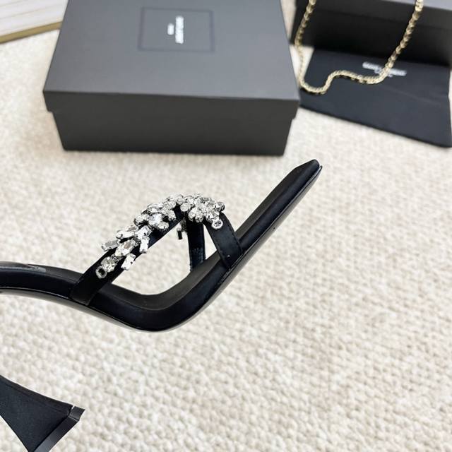 ysl圣罗兰24年新款 交叉水钻扣高跟凉鞋
