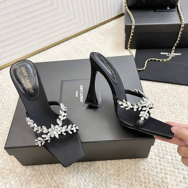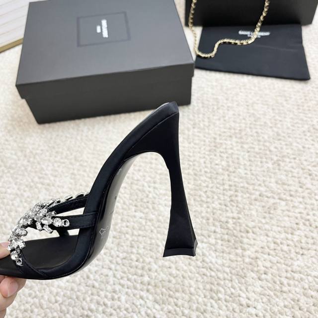 ysl圣罗兰24年新款 交叉水钻扣高跟凉鞋真丝面 真皮底跟高:10.5cm正码:35-39订做40.41.42